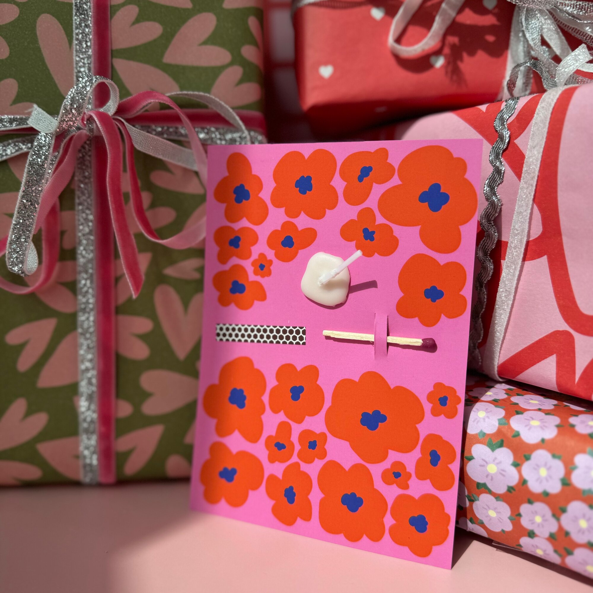 Купить Открытка свечка "Цветочки", от Вьюнчик, 14,8х10,5 см (А6), милая поздравительная открытка, цветы