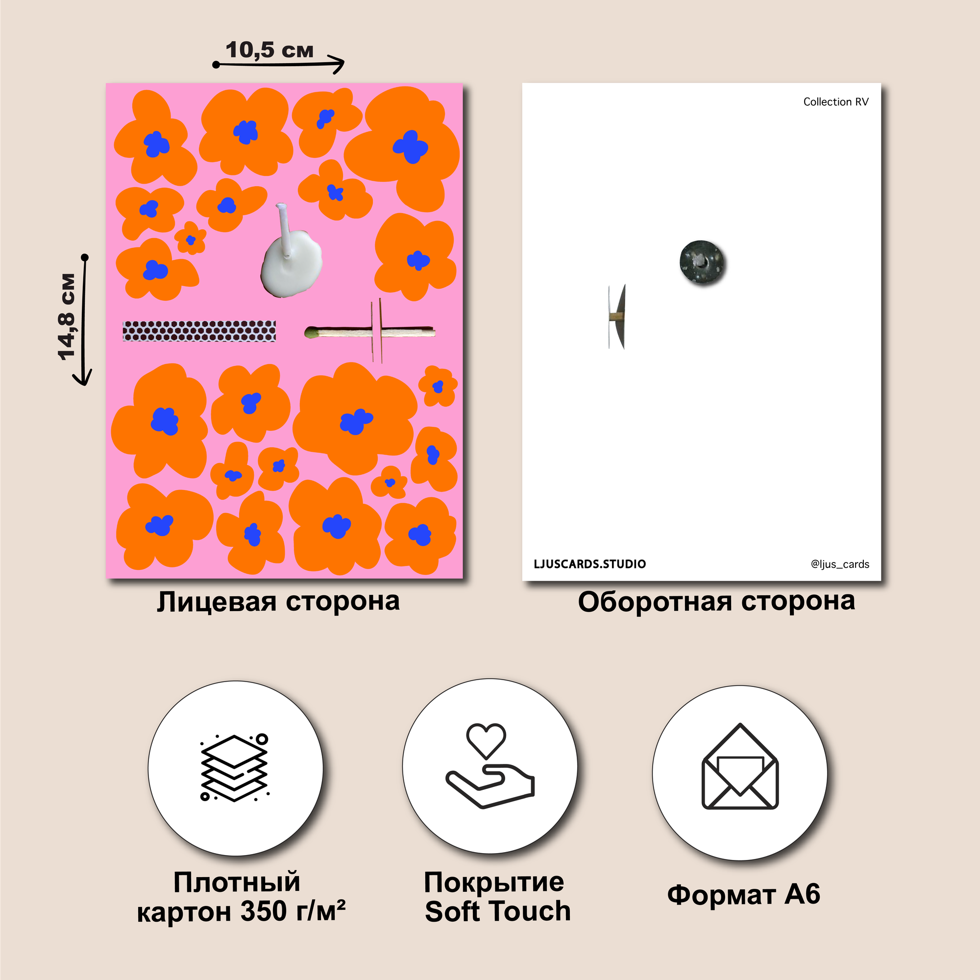 Открытка свечка "Цветочки", от Вьюнчик, 14,8х10,5 см (А6), стильная милая поздравительная открытка, цветы