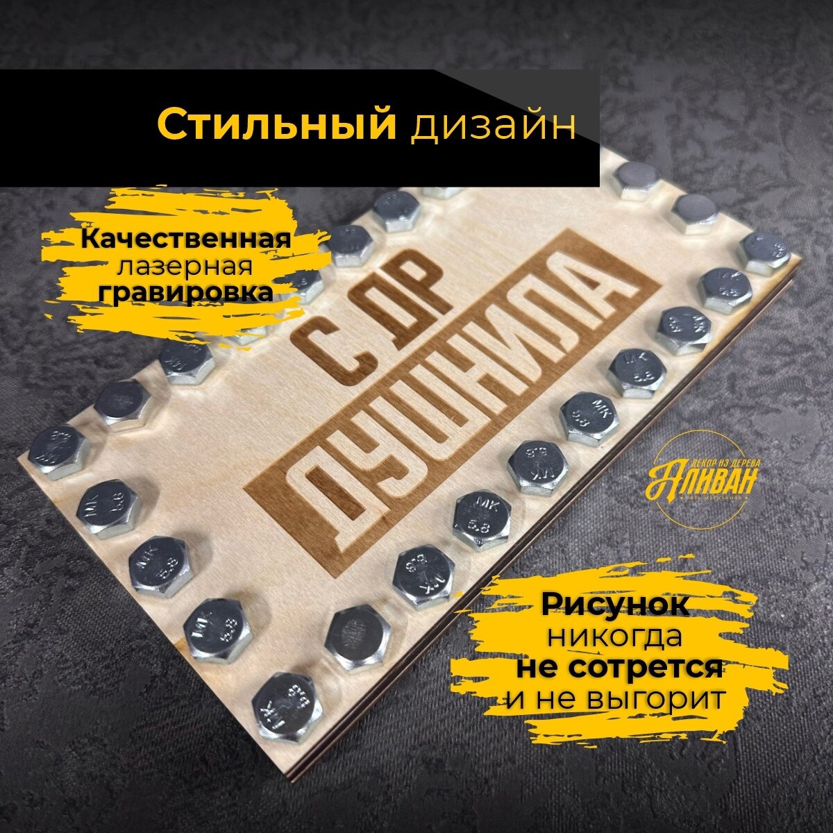 Конверт для денег деревянный подарочный с болтами на день рождения