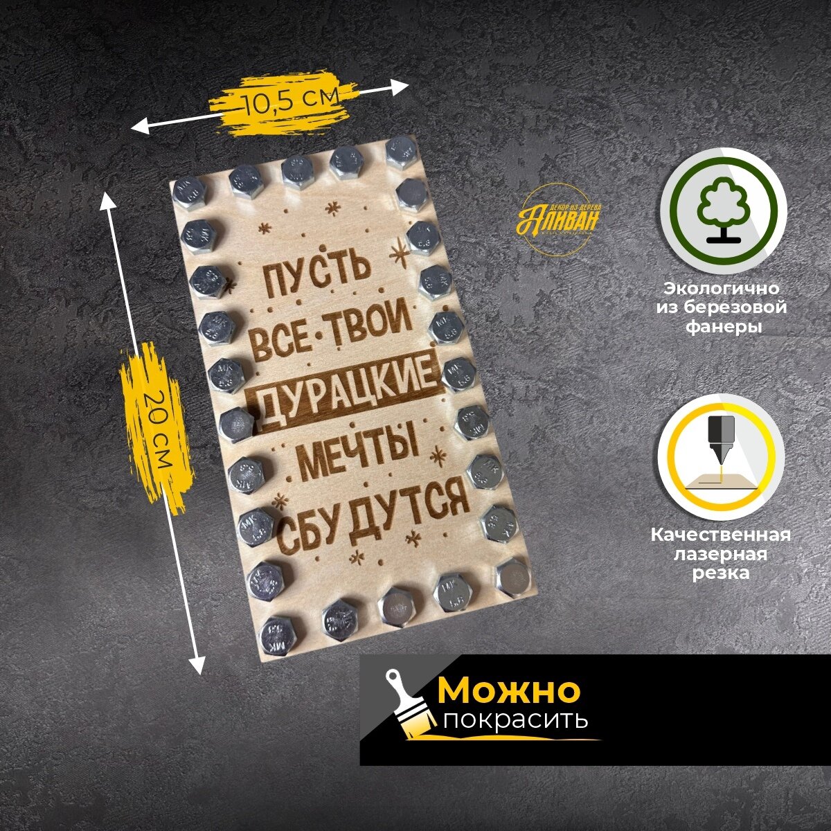 Конверт для денег деревянный подарочный с болтами на день рождения