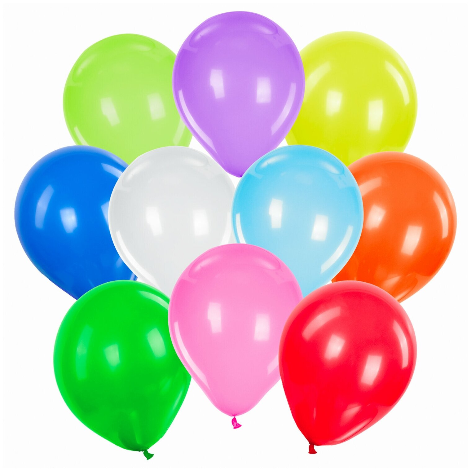 Купить Воздушные шары для праздника / воздушные шарики набор на день рождения Золотая Сказка, 10" (25 см), Комплект 50 штук, ассорти 10 цветов, пакет, 105001