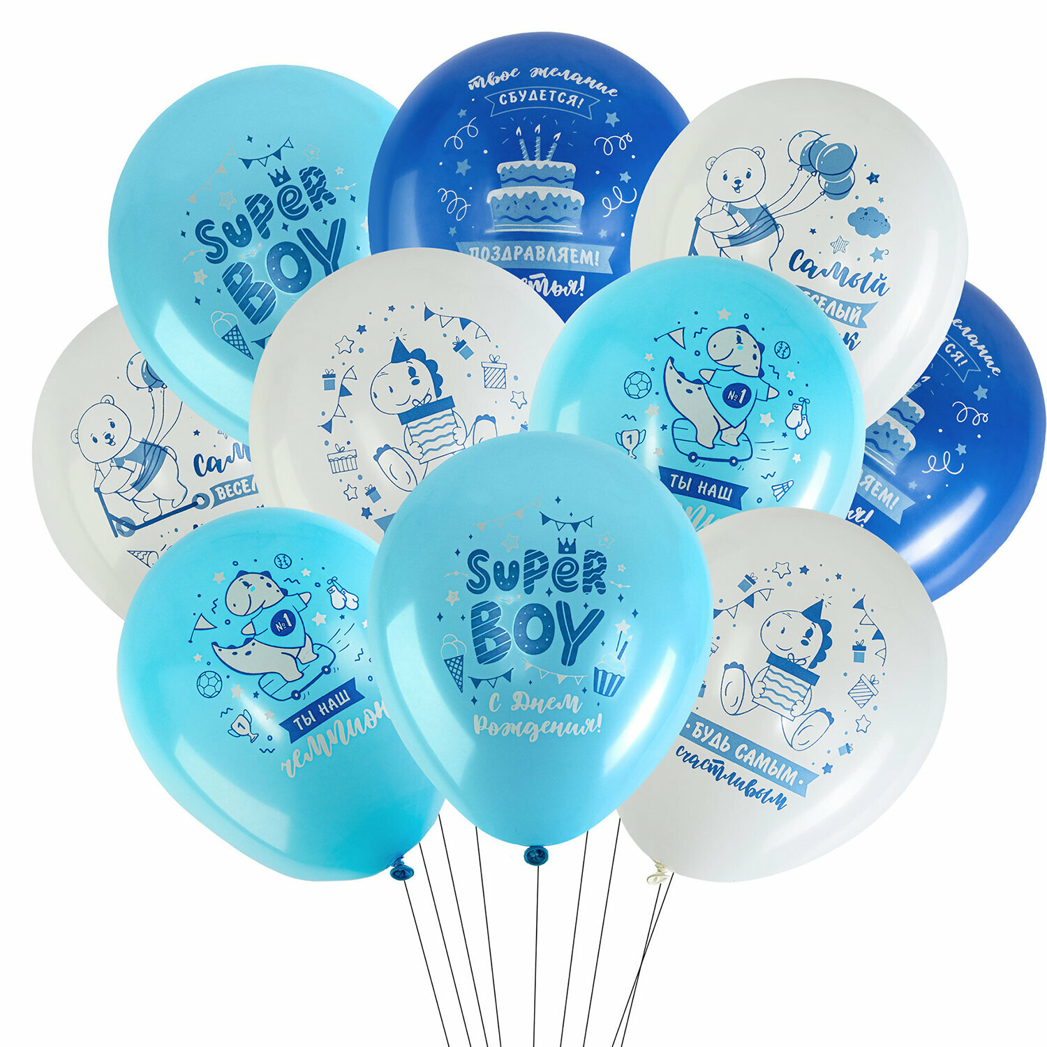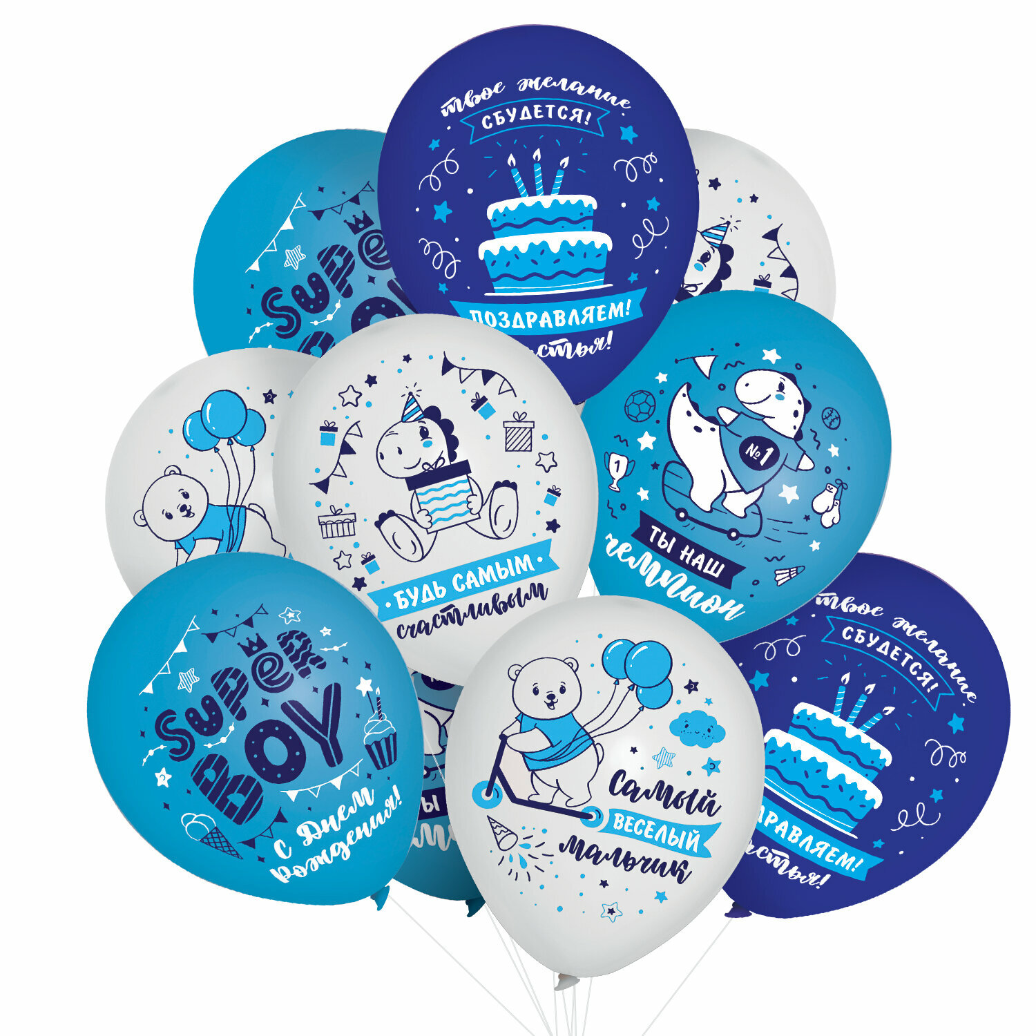Шарики воздушные с днем рождения для мальчика набор 10 штук, шары для фотозоны 30 см с рисунком, ассорти, Brauberg Kids, 591889
