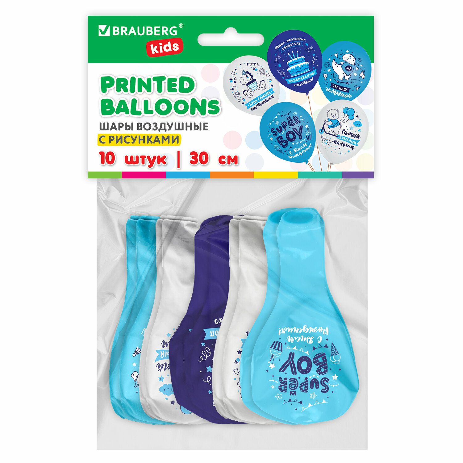 Шары воздушные 30 см с рисунком "Для мальчика", комплект 10 штук, ассорти, BRAUBERG KIDS, 591889 интересное: