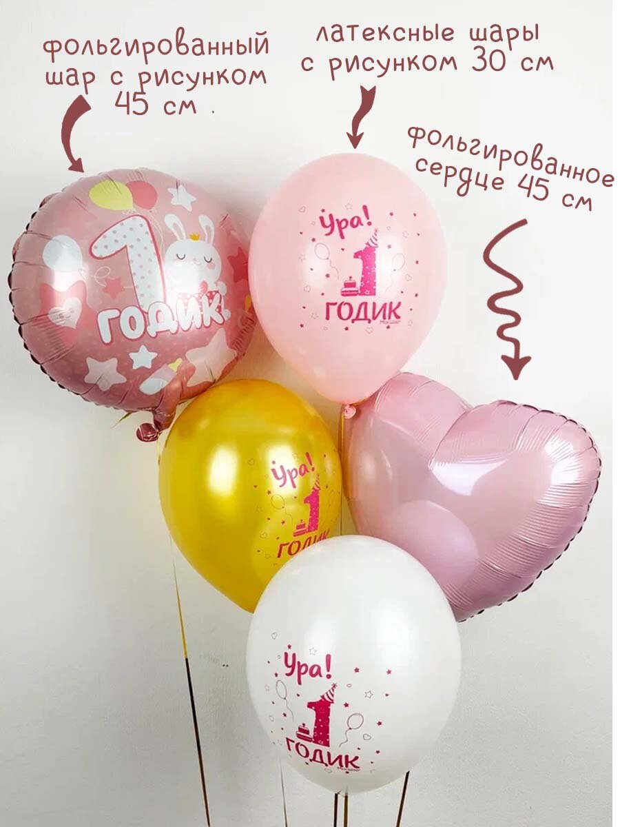 Набор воздушных шариков для девочки с цифрой "1" на годик