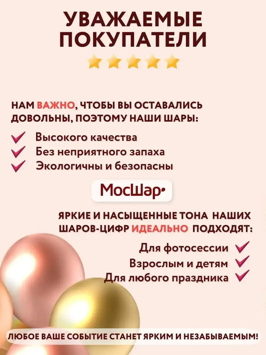 Набор воздушных шаров "МосШар", фольгированная цифра и шарики хром, розовый, глянцевый