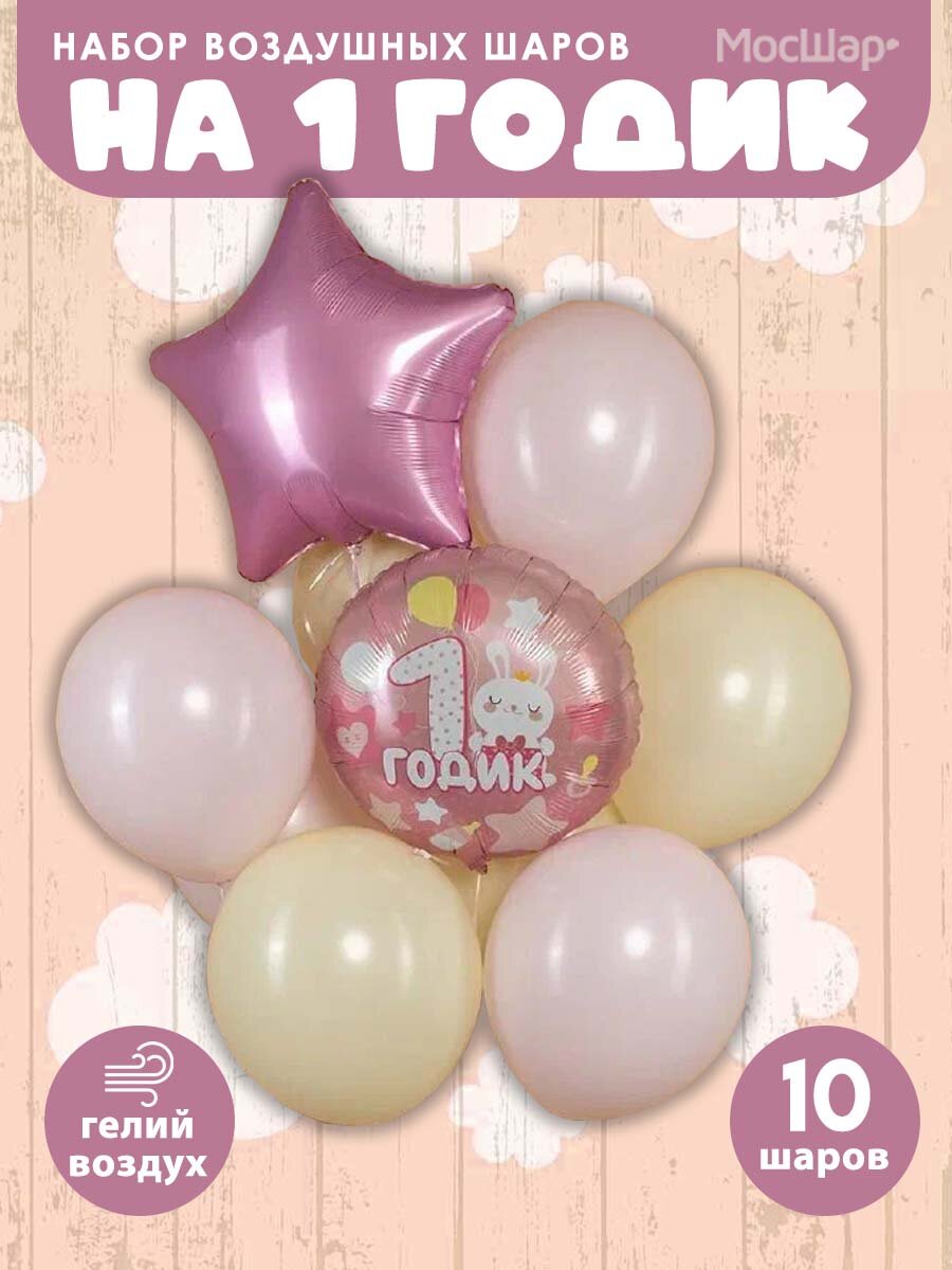 Купить Набор воздушных шаров Мосшар "На 1 Годик", для девочек, на день рождение, 10 шаров