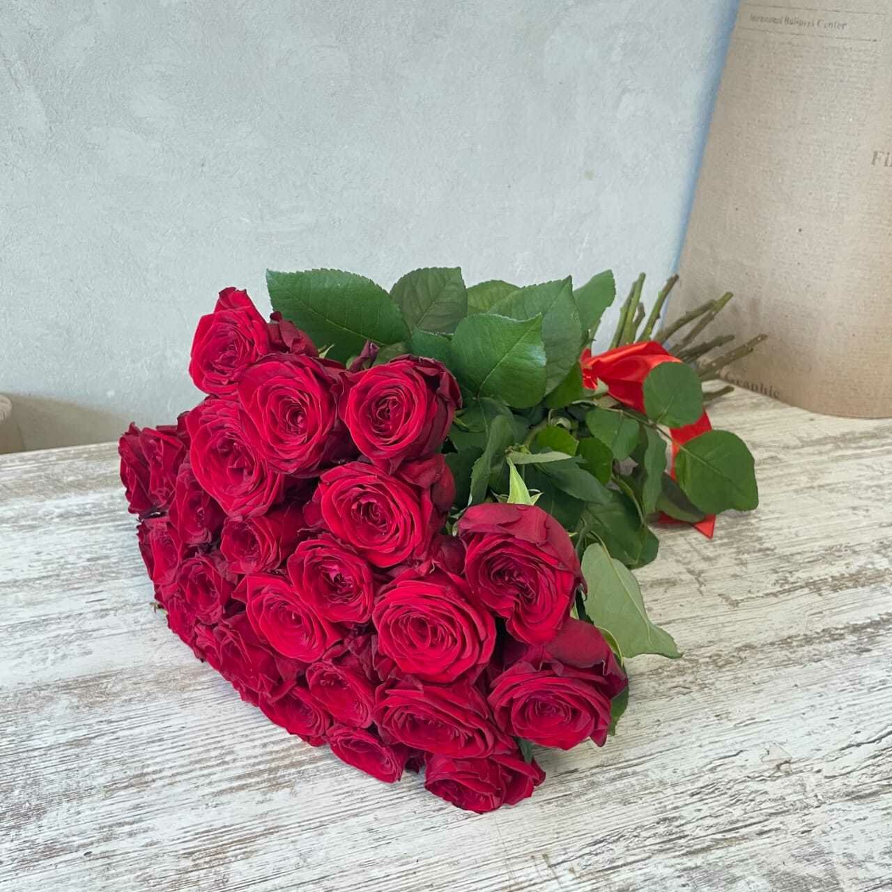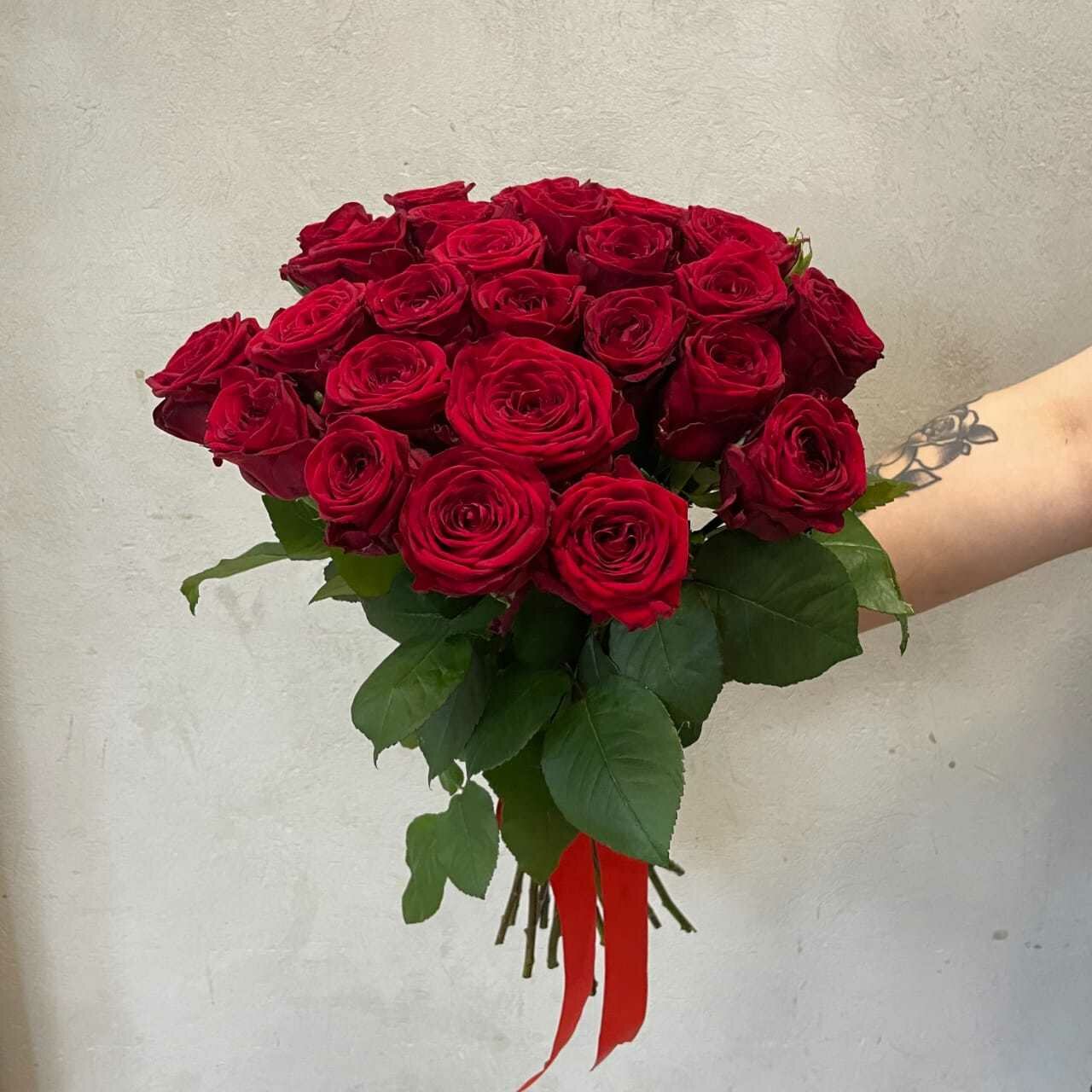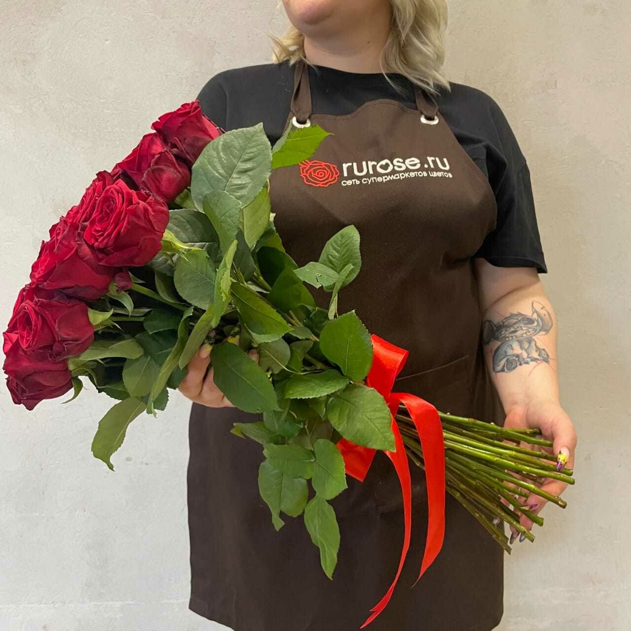 Живые цветы букет красных роз 25 шт 60 см Ред Наоми