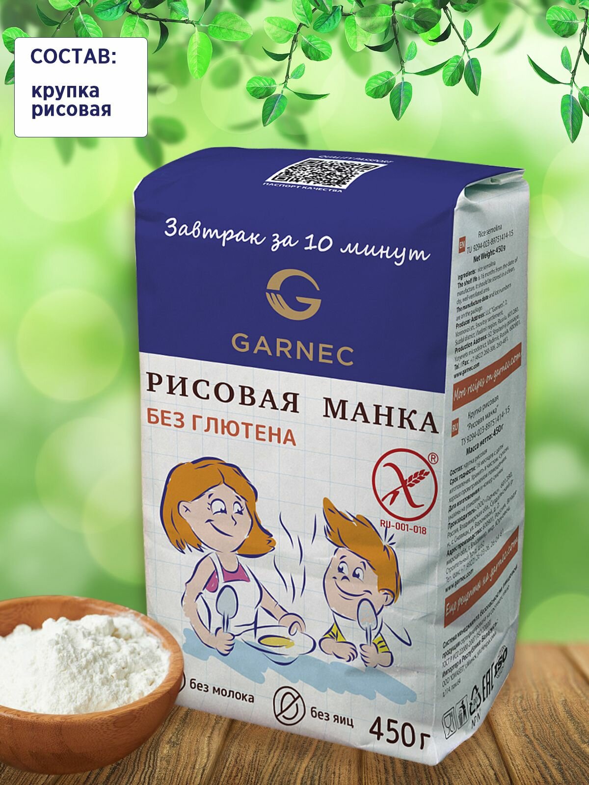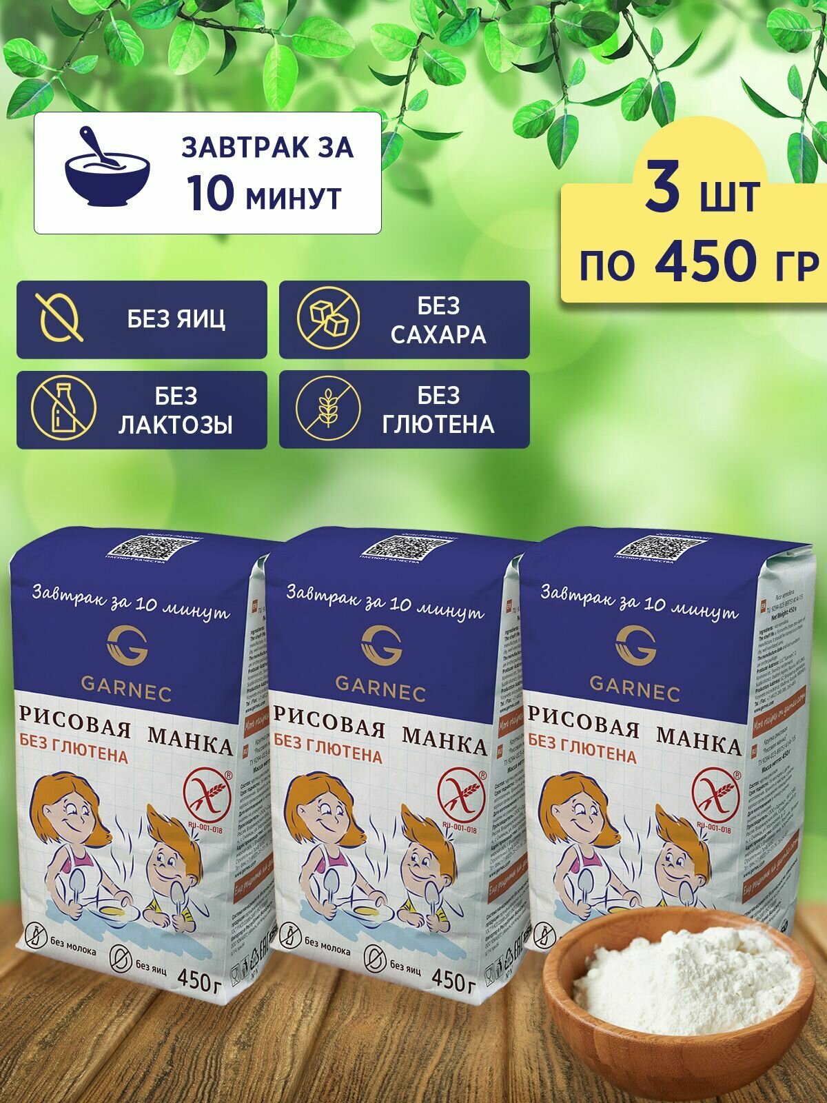 Купить Крупка Гарнец Рисовая манка без глютена, 3 шт по 450 гр, Garnec