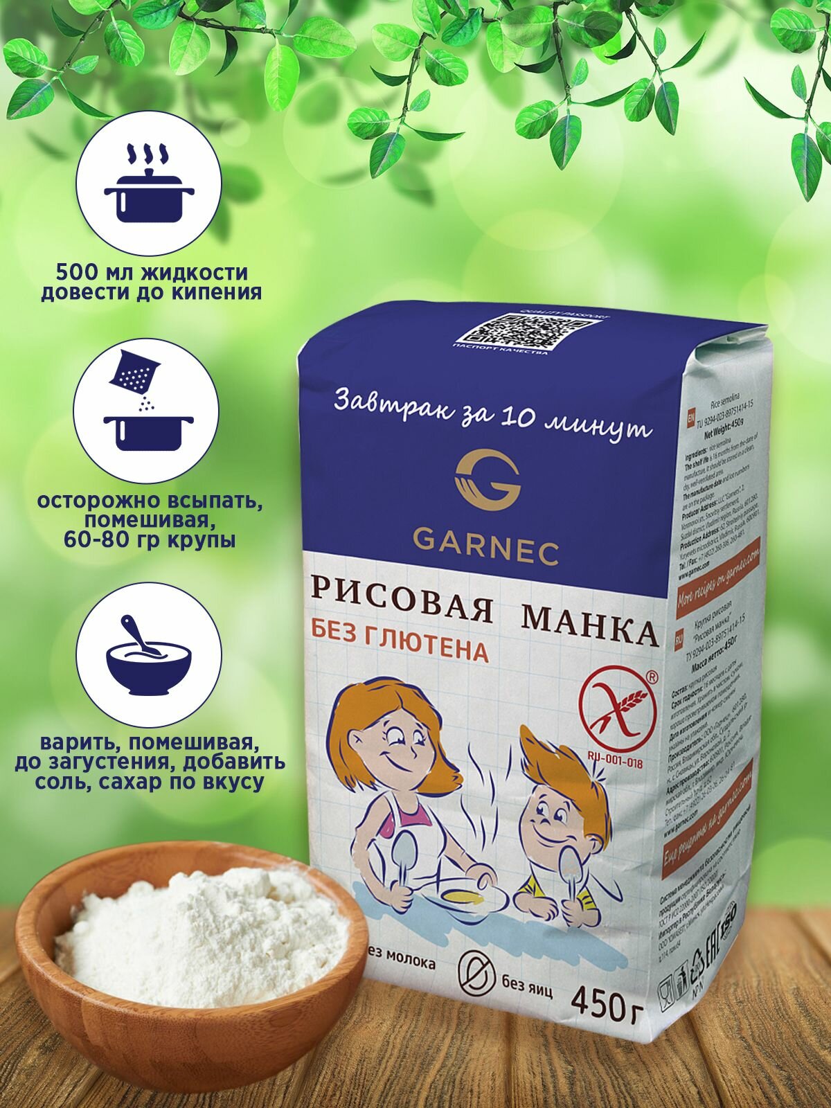 СохранитьКрупка Гарнец Рисовая манка без глютена, 3 шт по 450 гр, Garnec интересное:
