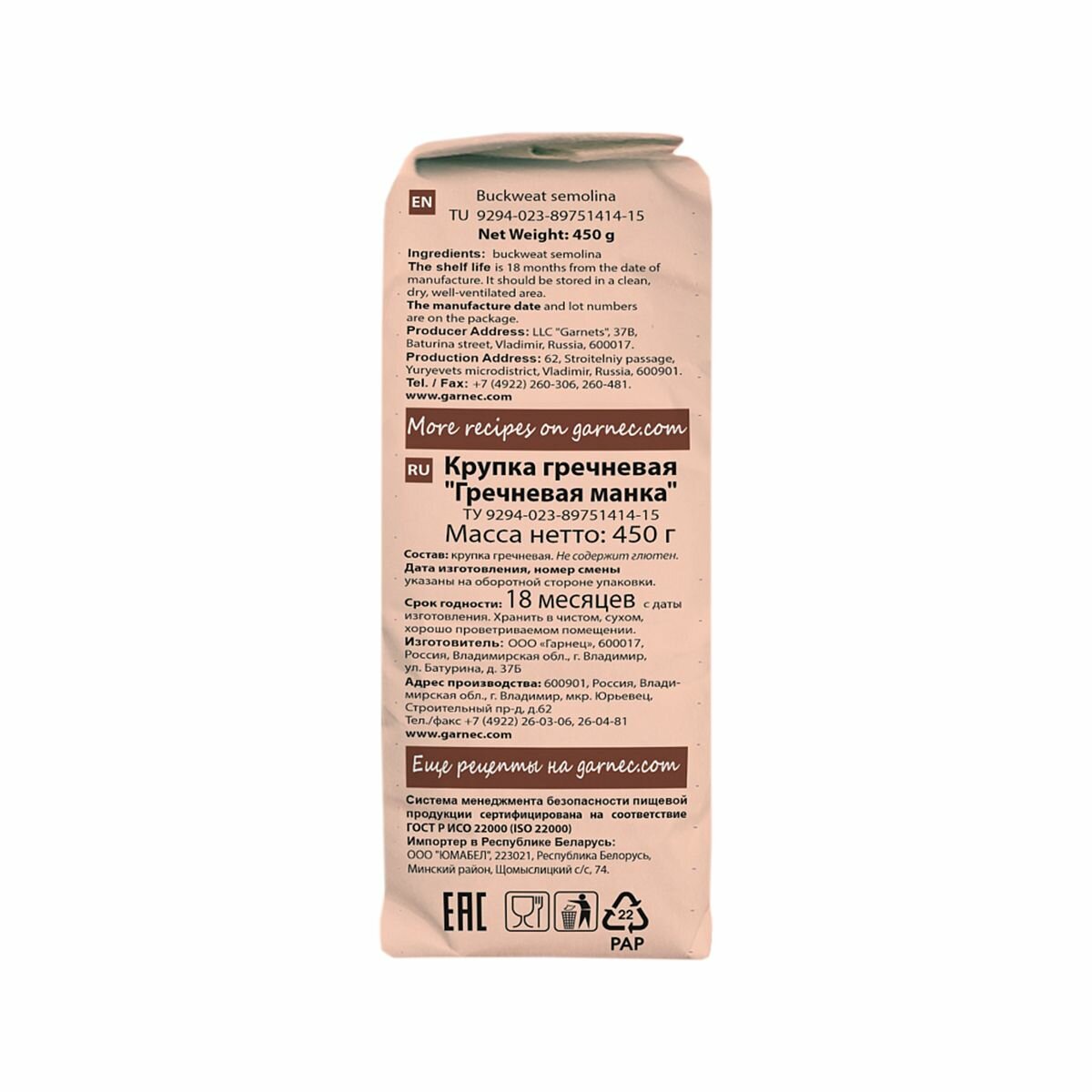 Крупка Garnec Гречневая манка, 450г (3 шт в наборе)