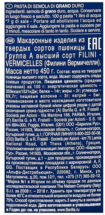 Паста Barilla Филини 450 г интересное: