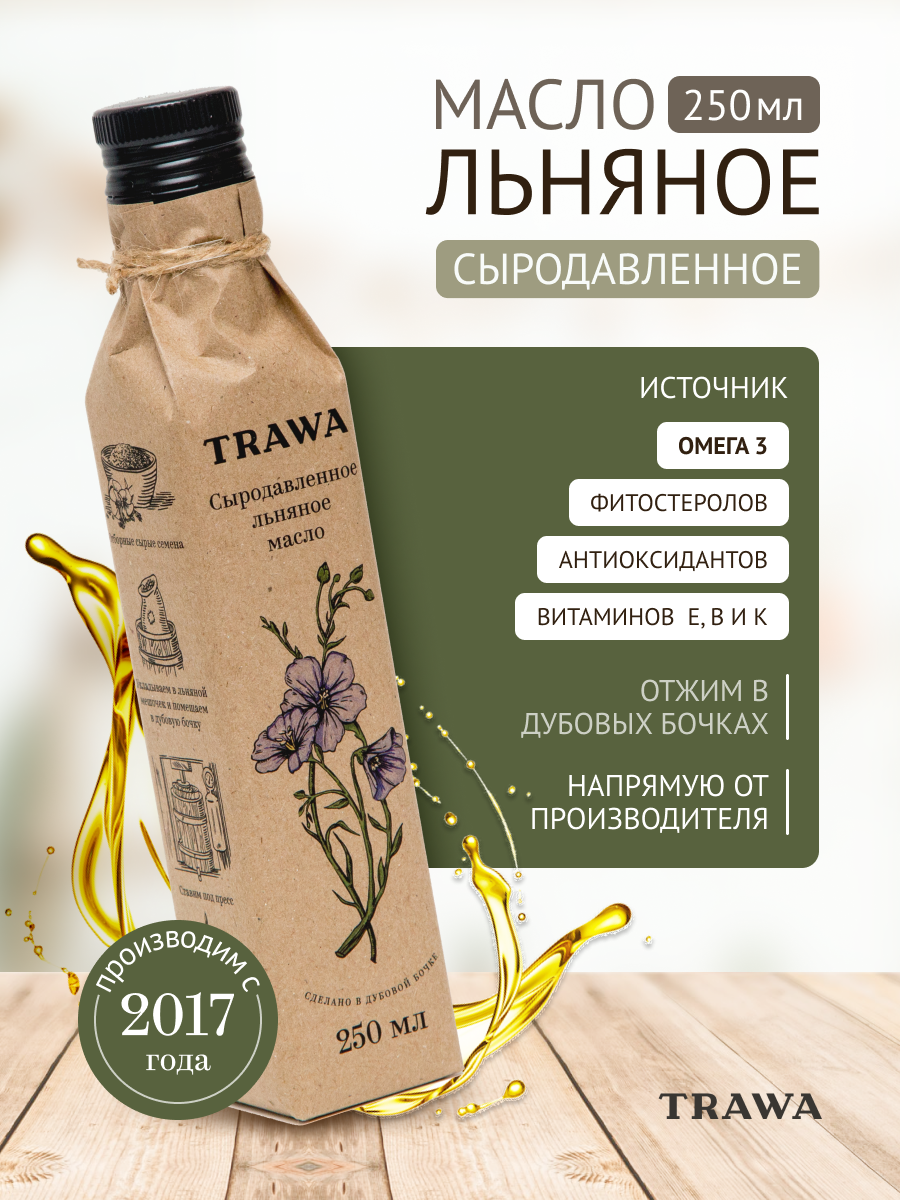 TRAWA Масло льняное сыродавленное 250 мл нерафинированное холодный отжим интересное: