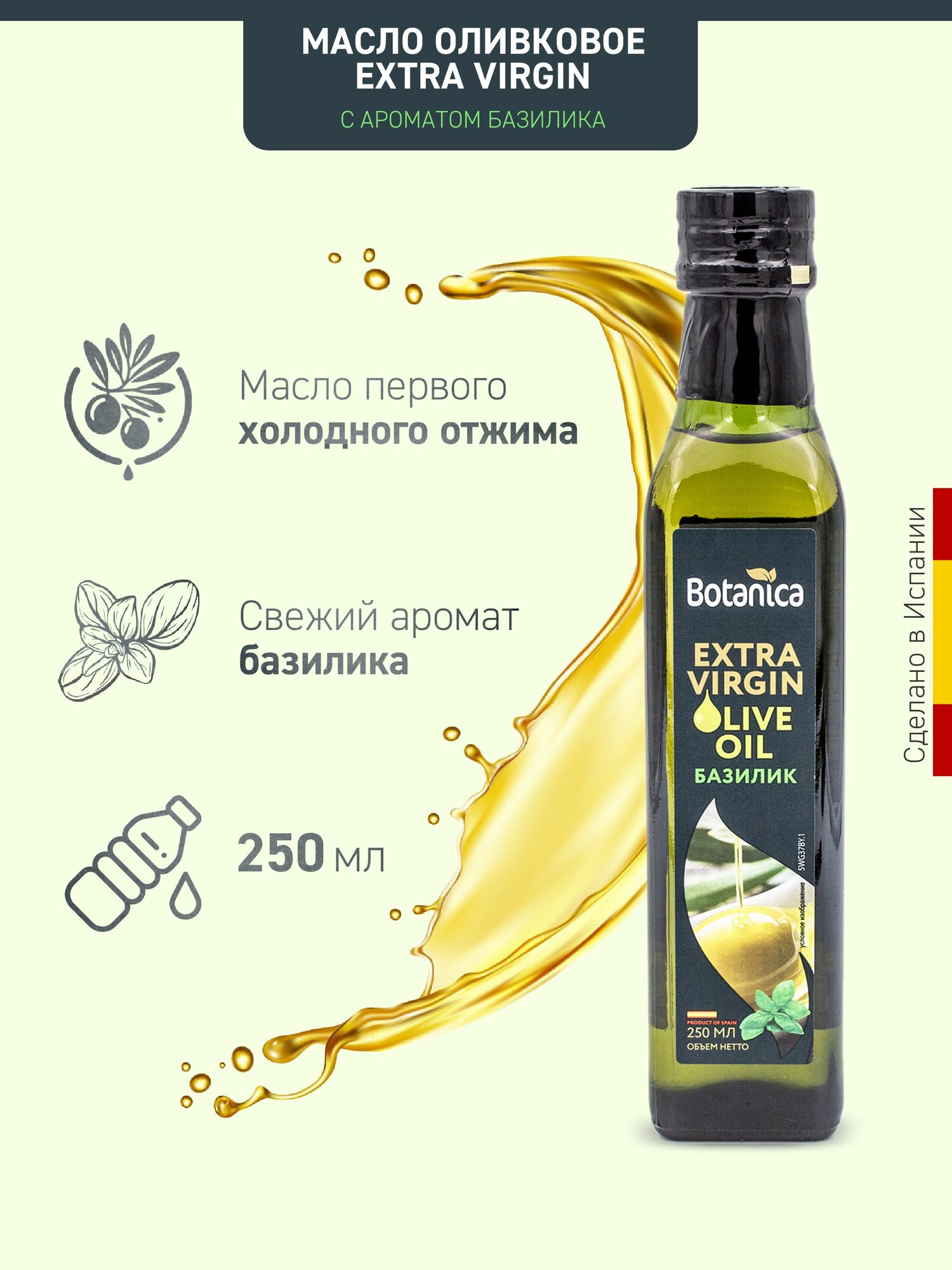 Масло оливковое нерафинированное Extra Virgin с ароматом базилика Botanica, 250мл