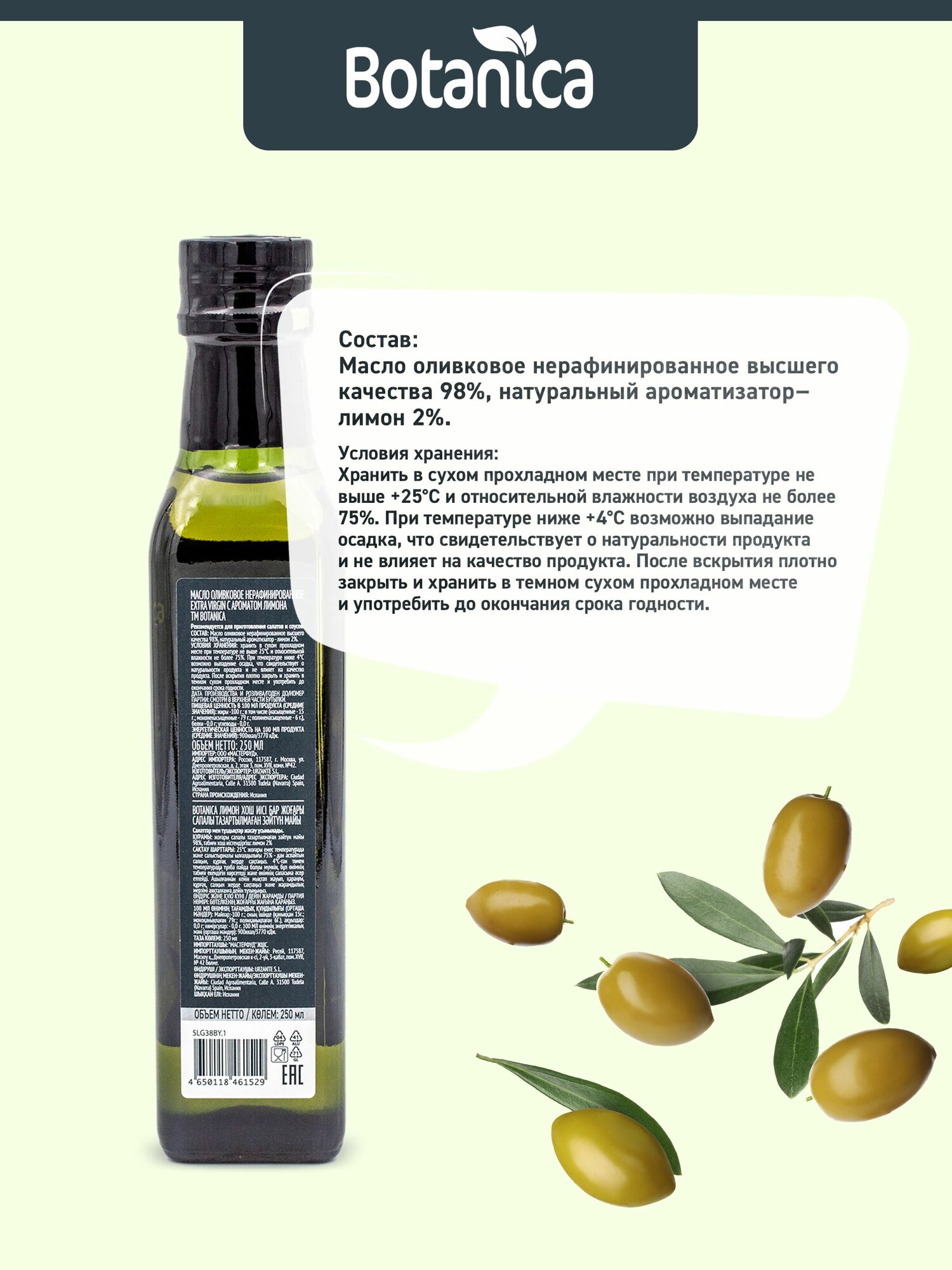 Купить Масло оливковое Botanica нерафинированное Extra Virgin с ароматом лимона, 250мл