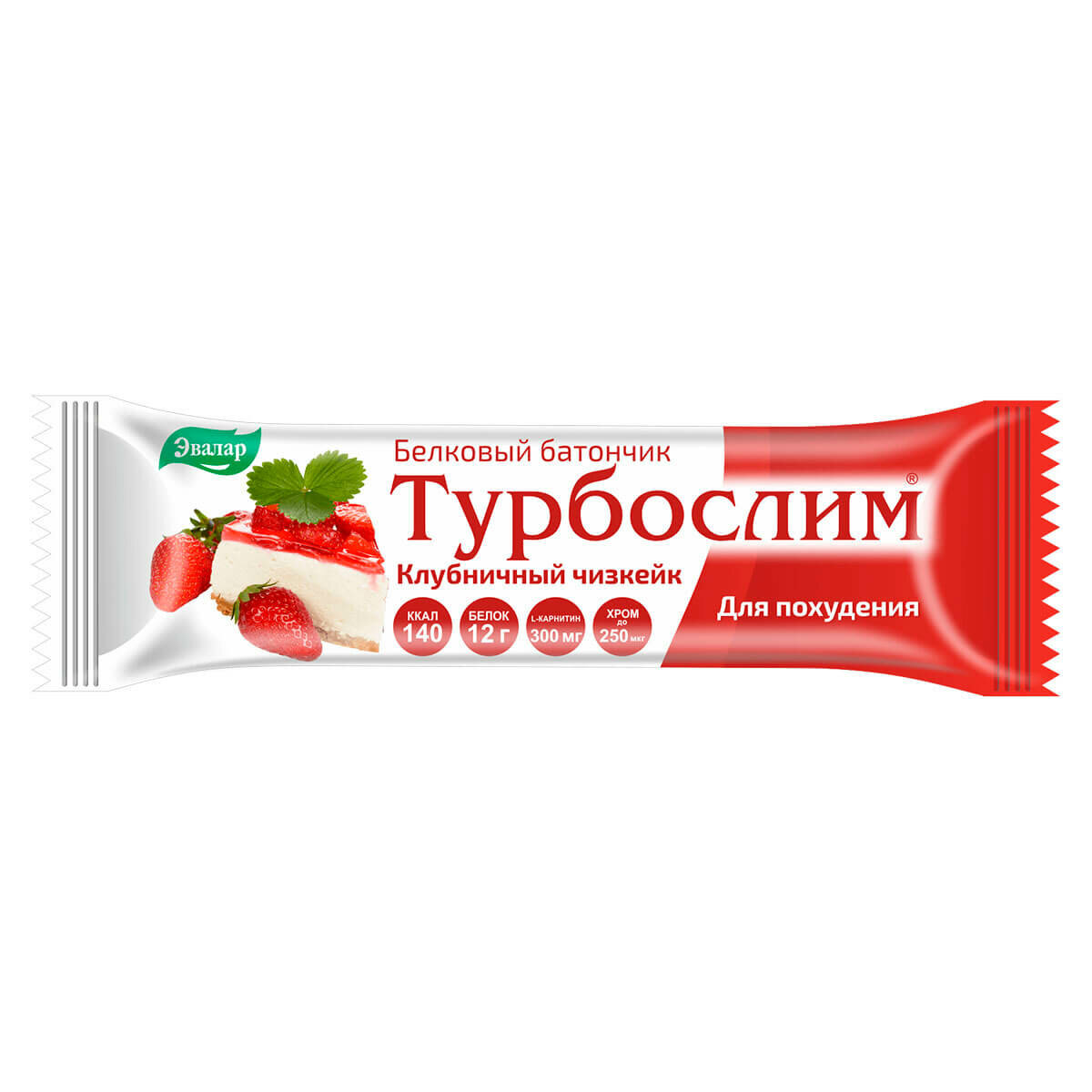 Турбослим батончик "клубничный чизкейк" для контроля веса (белковый), 50 гр, Эвалар