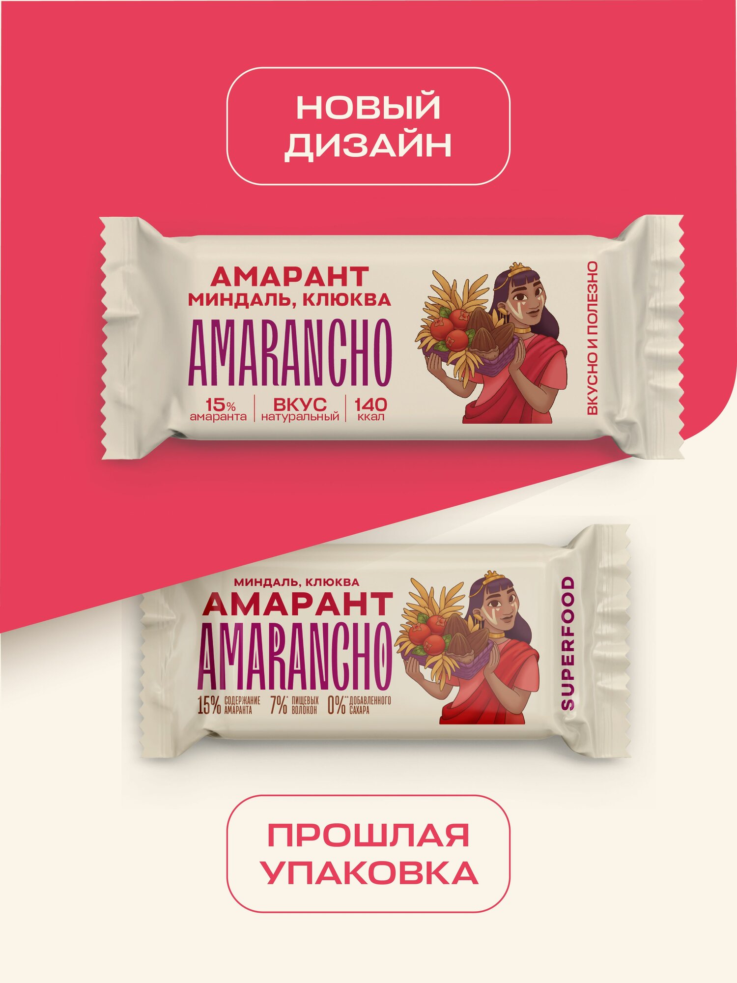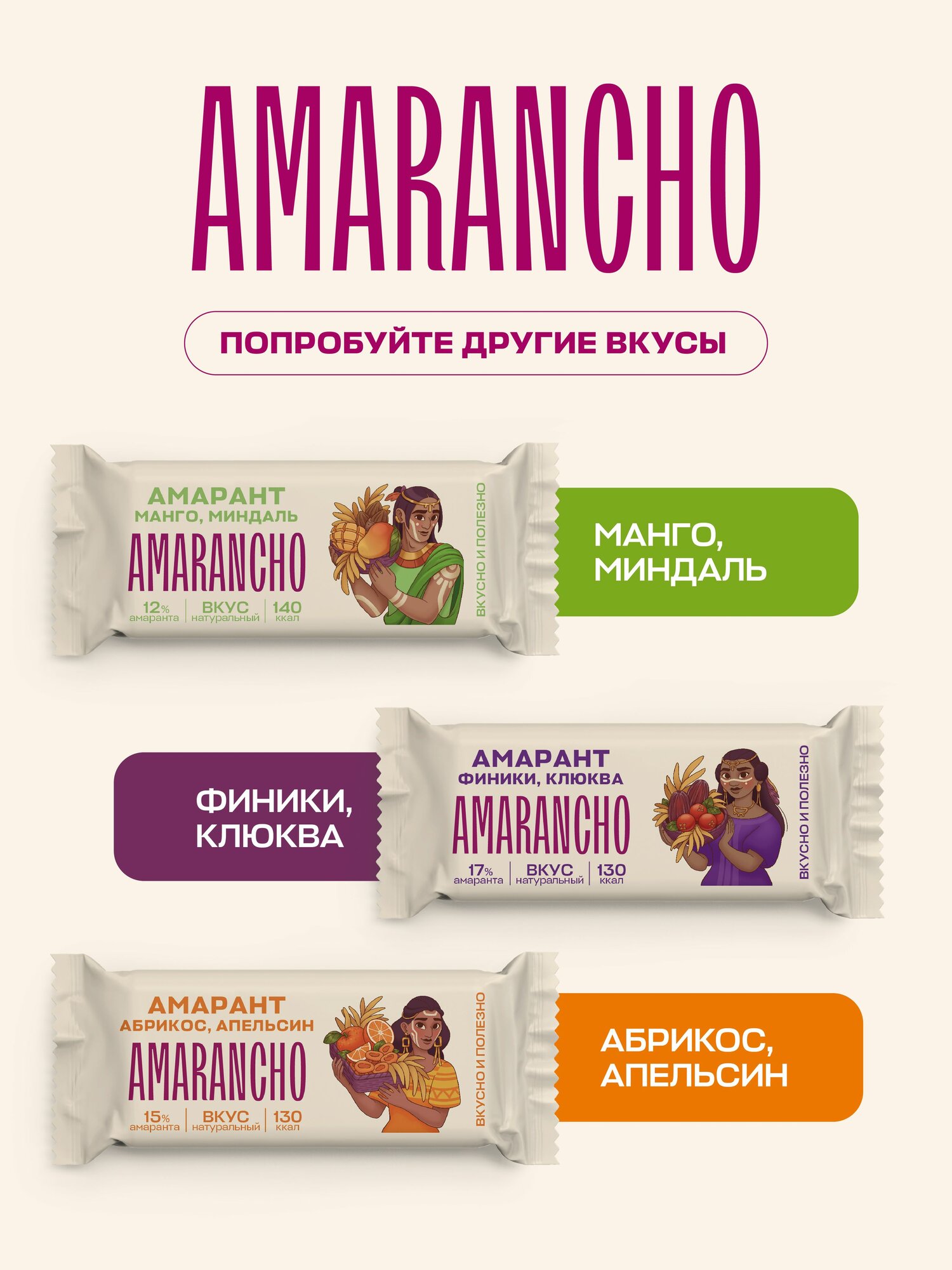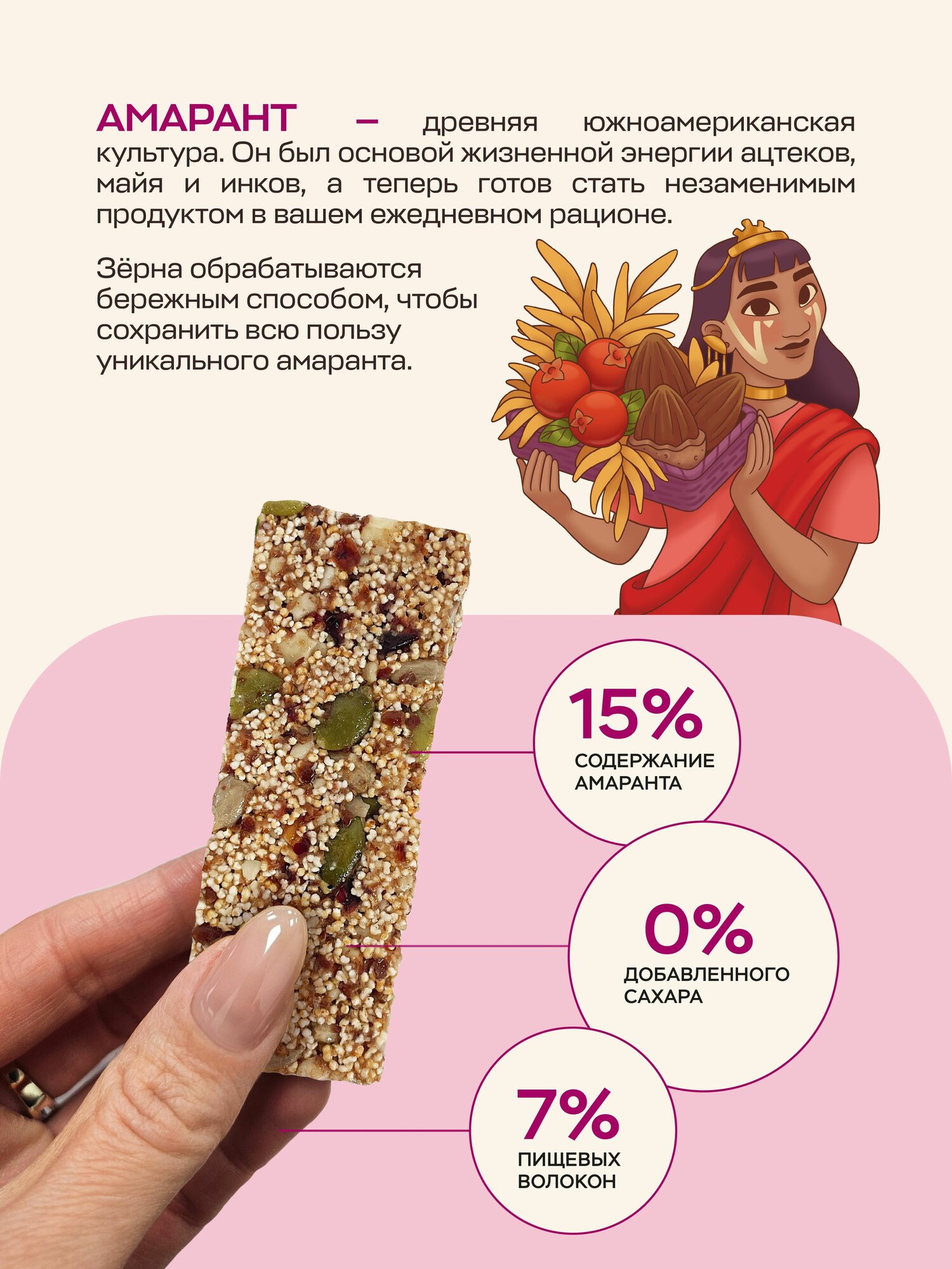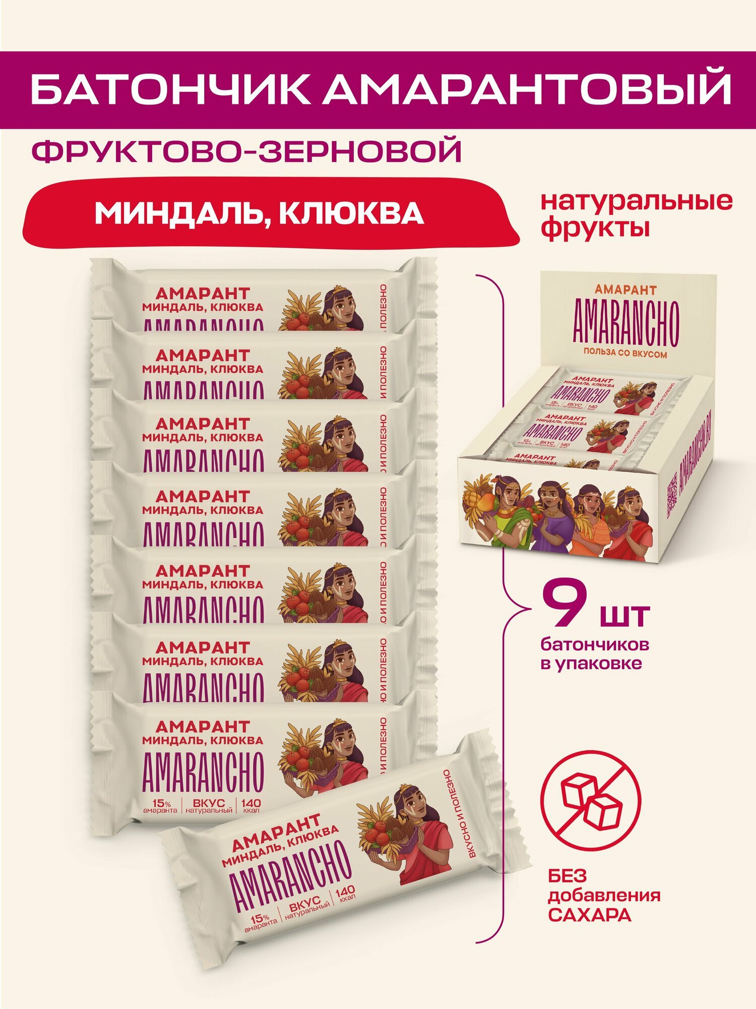 Купить Батончики фруктово-зерновые "Amarancho", амарант, миндаль, клюква, мюсли без сахара, 9 шт