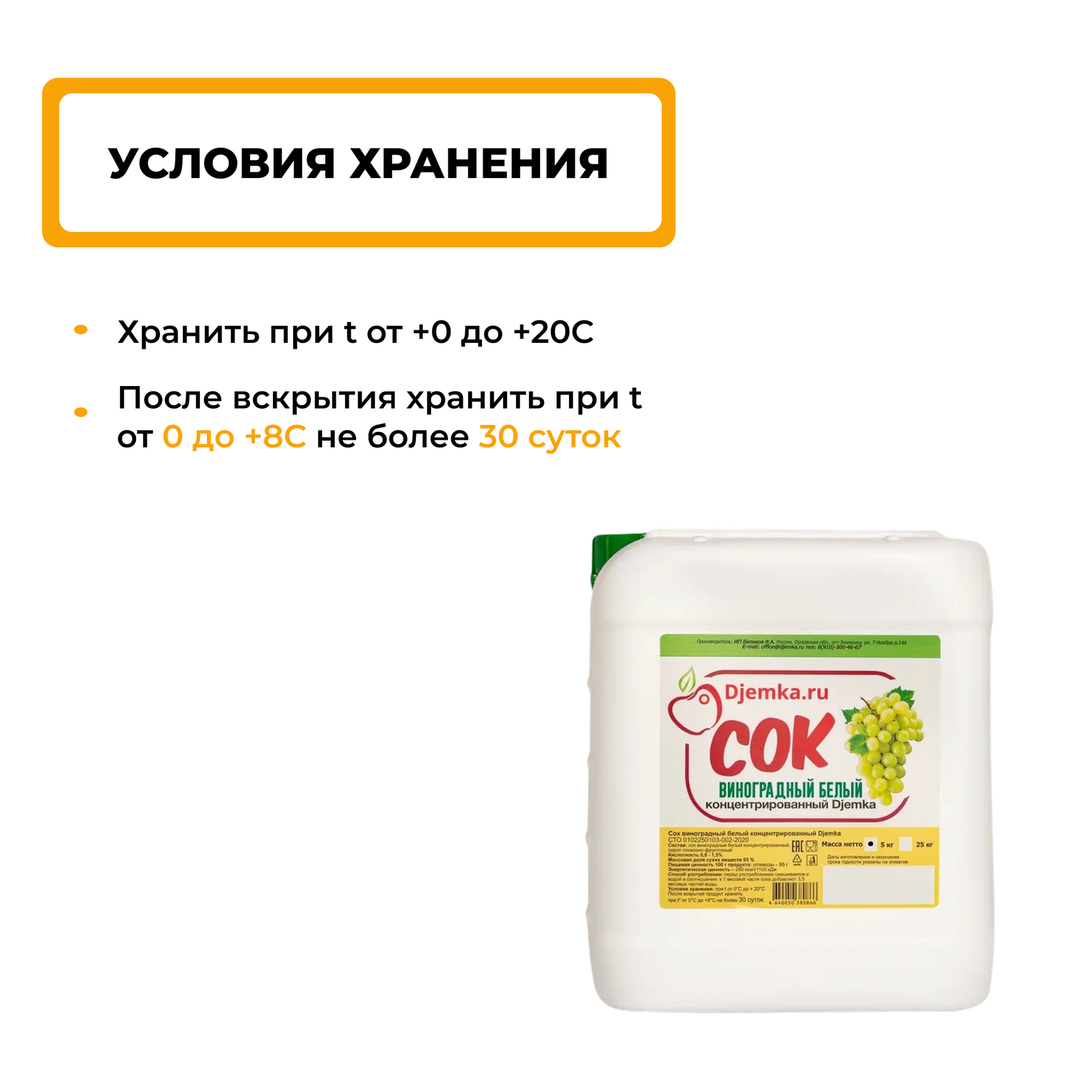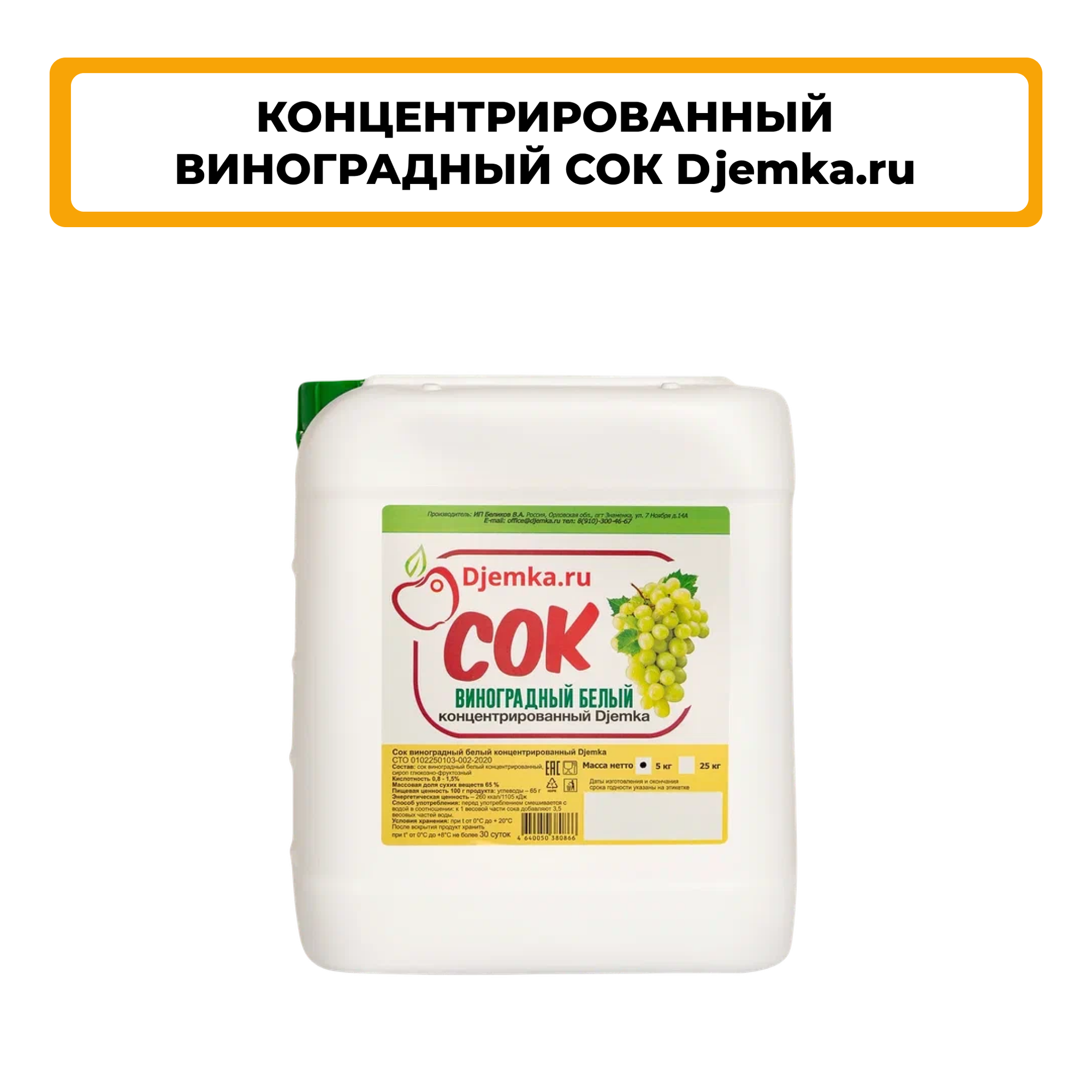 Купить Сок Djemka.ru "Белый виноград", концентрированный, в пластиковой канистре, 5 кг