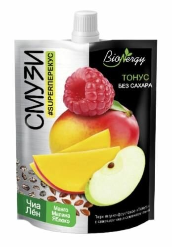 Купить Смузи Тонус без сахара Чиа, лен (манго, малина, яблоко) BioNergy, 3 шт по 120 гр