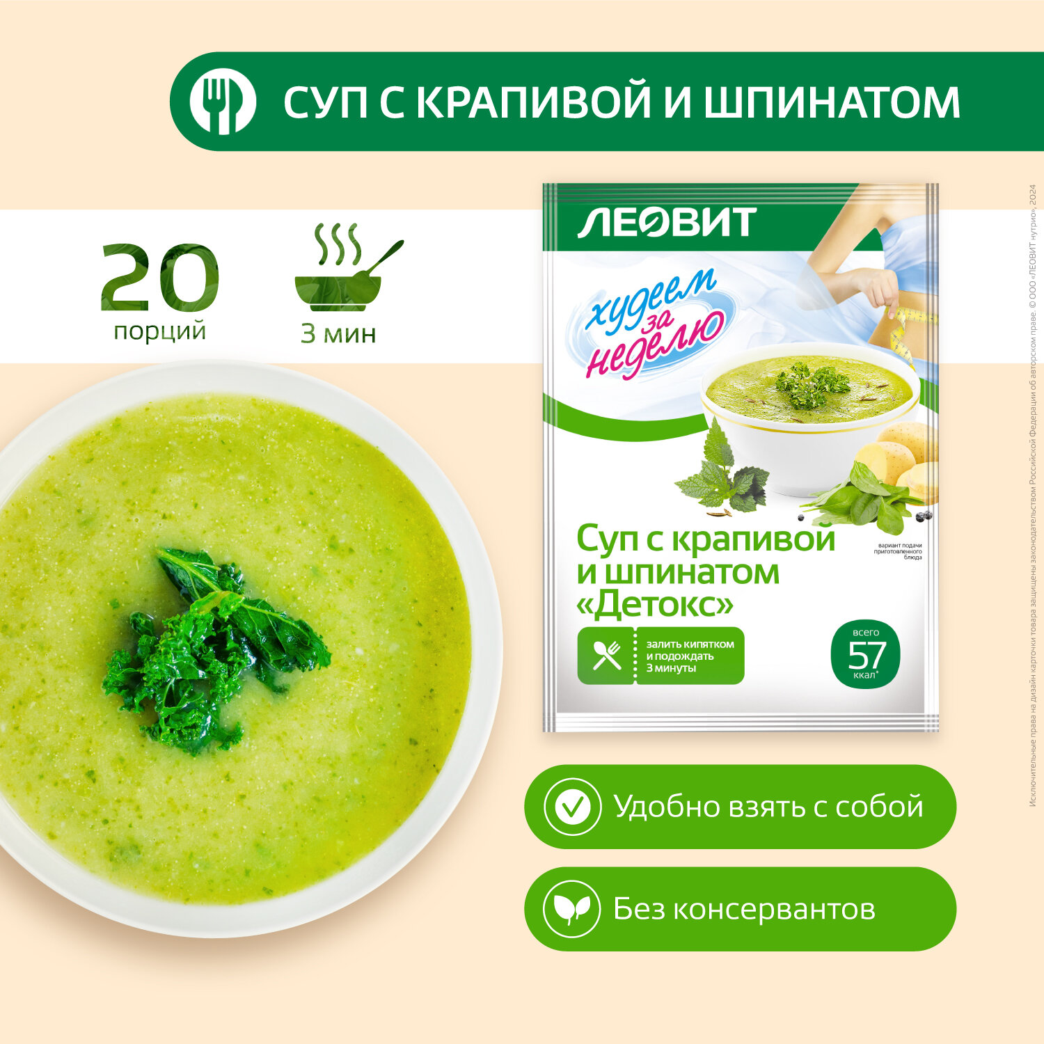 Суп-пюре с крапивой и шпинатом для детоксикации 20 шт 20 гр Худеем за неделю ЛЕОВИТ для похудения быстрого приготовления интересное:
