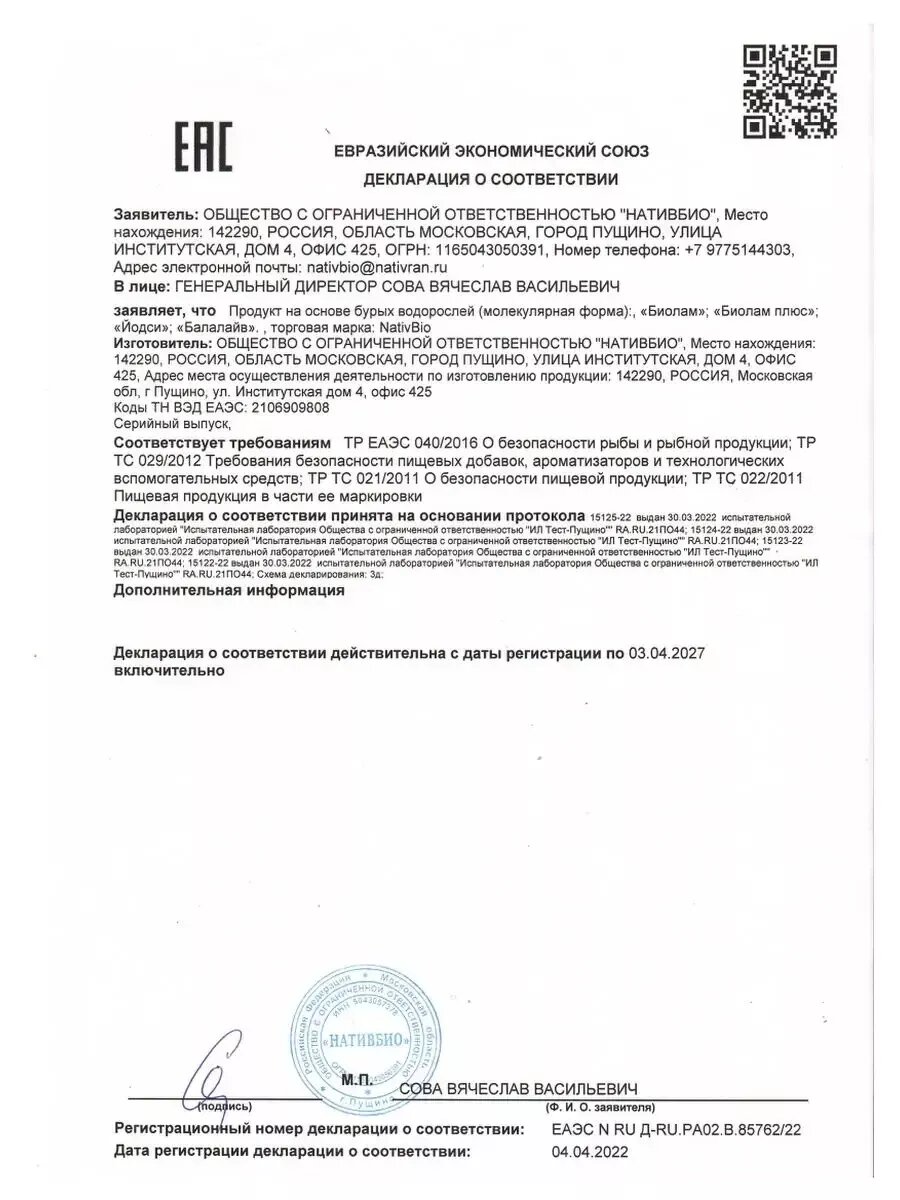 NativBio. Биолам плюс. Продукт на основе бурых морских водорослей (ламинария и фукус), 2 х 500 гр. интересное: