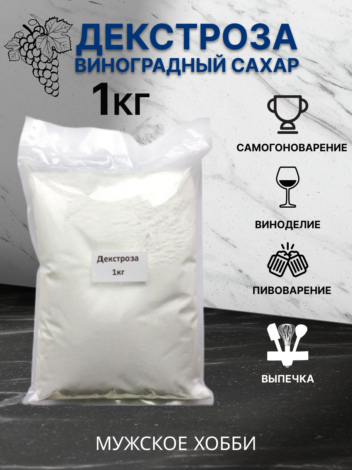 Купить Декстроза натуральная (Глюкоза) 1 кг, (Виноградный Сахар, Сахарозаменитель, Подсластитель, Моносахарид, Пищевая Добавка)