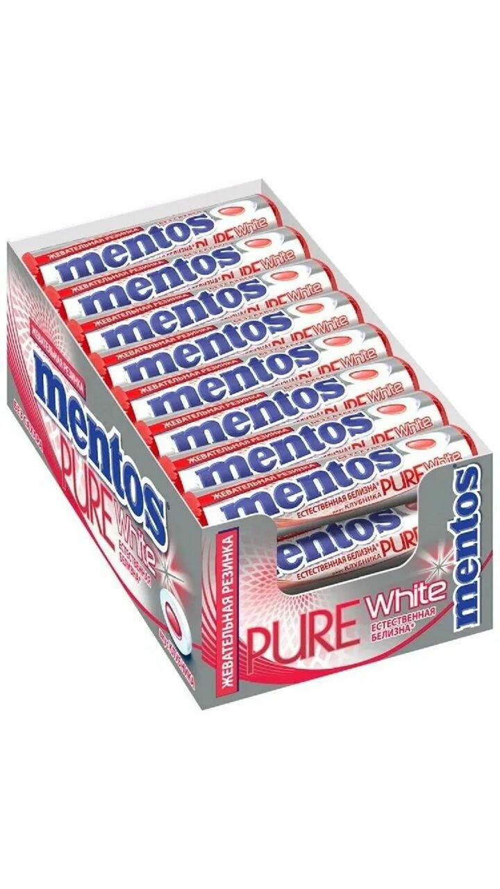 Купить Жевательная резинка Mentos Pure White вкус Клубника, 15,5 грамм 24 штуки