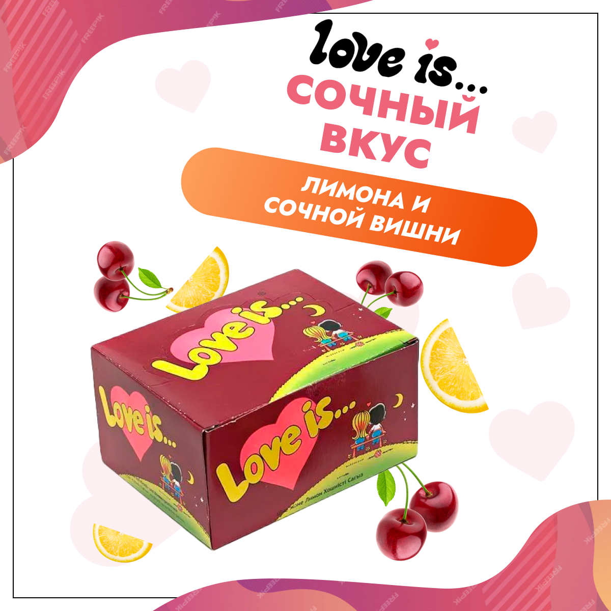 Love is Жевательная резинка со вкусом Вишня-Лимон 100шт