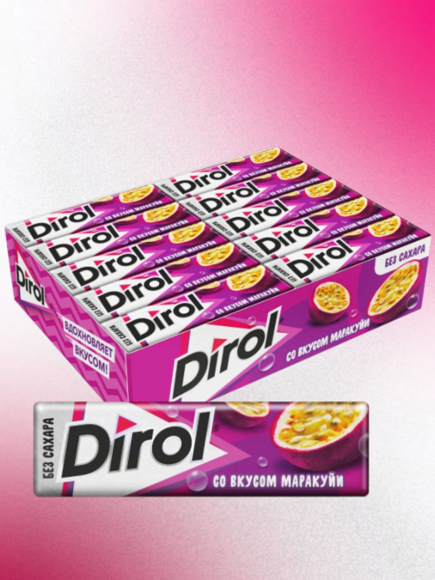 Жевательная резинка Дирол Маракуйя, 30 шт.*13.6 г, без сахара интересное: