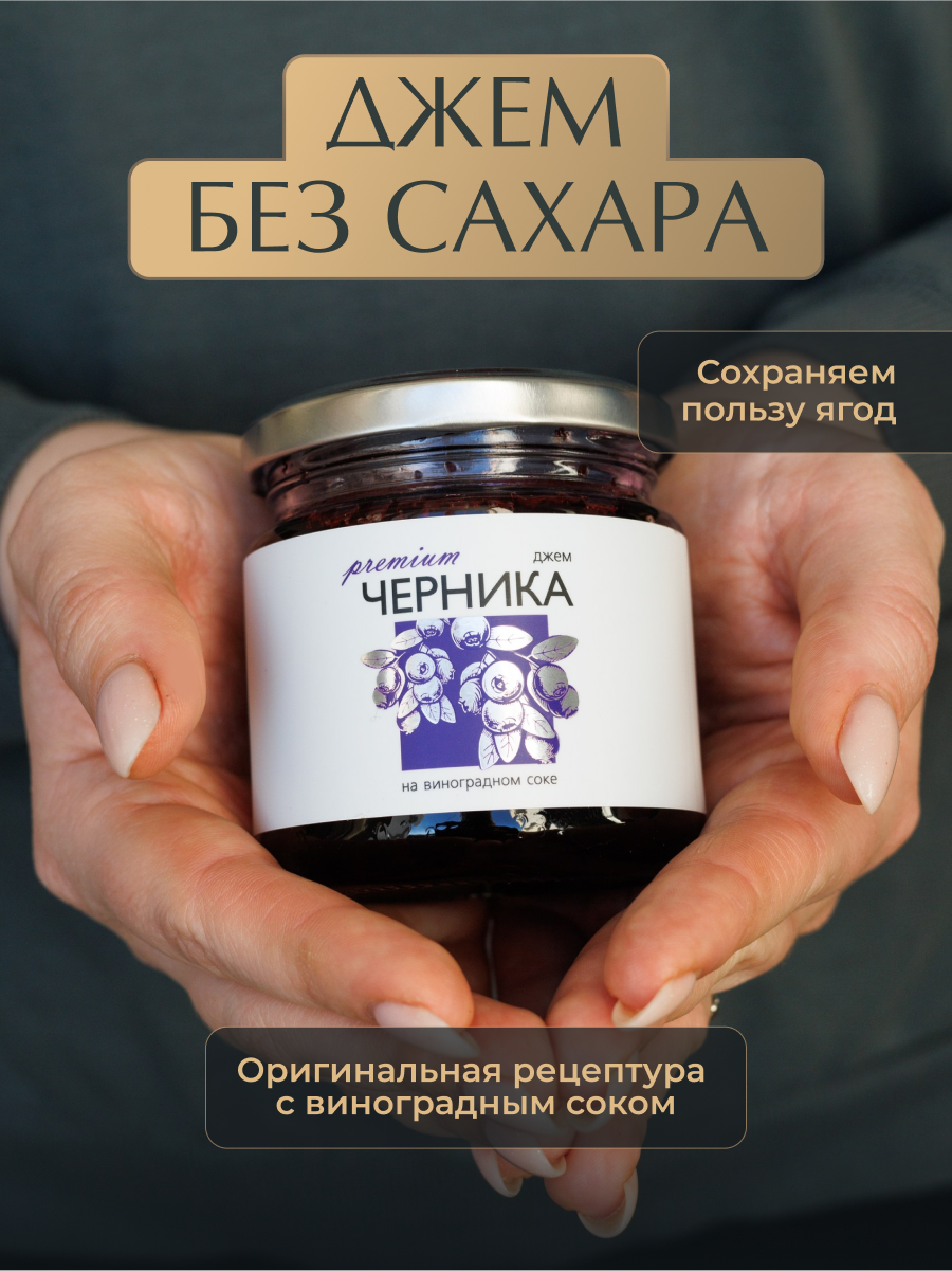 Купить Джем из Черники "Русский лес" без сахара 220гр. Низкокалорийный джем