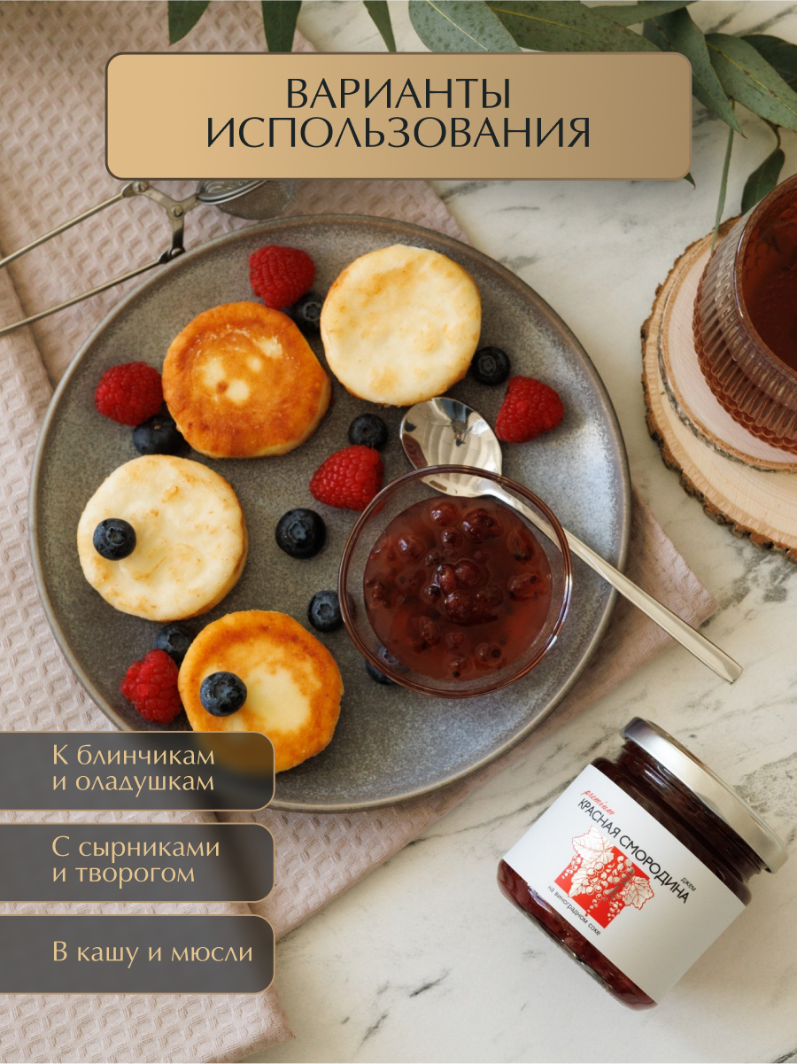 Купить Джем из Красной смородины "Русский лес" без сахара 220 гр. Низкокалорийный джем