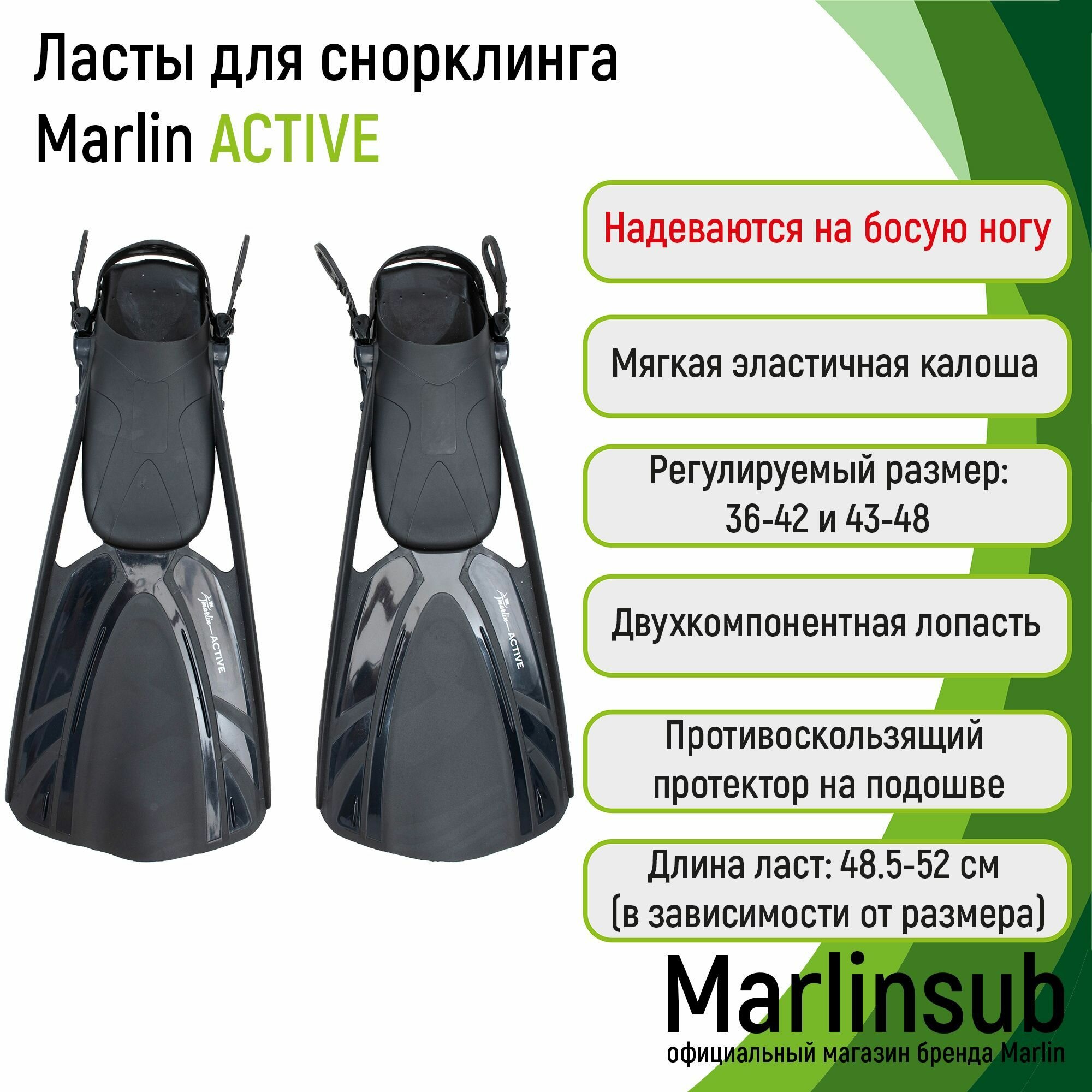 Ниже Вы можете прочитать отзывы на Ласты для плавания с открытой пяткой Marlin ACTIVE black 36-42 (S/M), ознакомится с подробными характеристиками, посмотреть интересные обзоры и фотографии на Ласты для плавания с открытой пяткой Marlin ACTIVE black 36-42 (S/M).