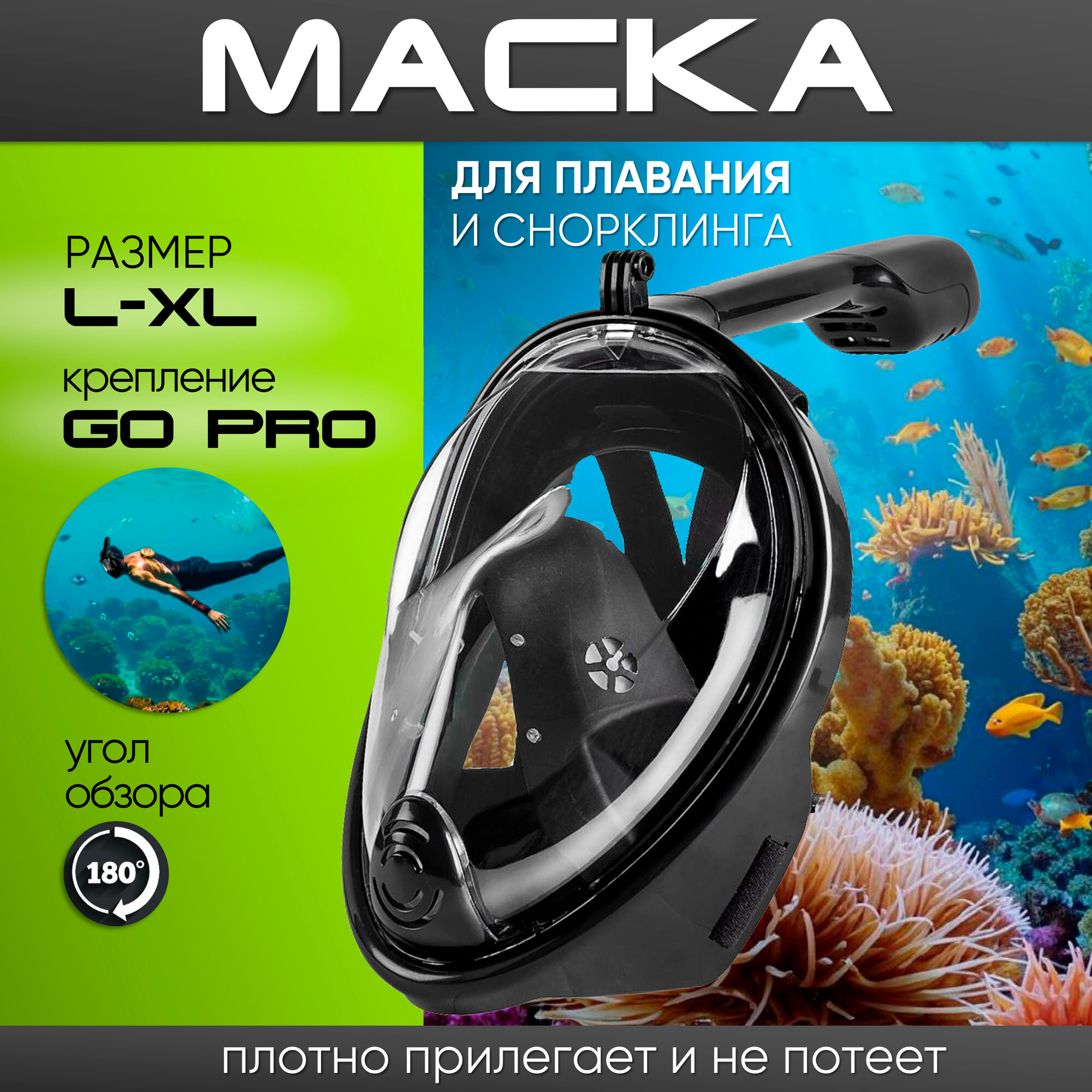 Маска плавательная полнолицевая, L-XL, для снорклинга, черная интересное: