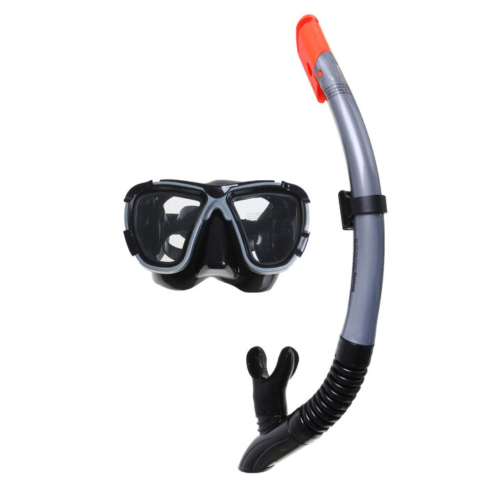 | Дополнительная информация | может поставляться в цветах: серый, чёрный; материал загубника: силикон; материал линзы: стекло; состав набора: трубка, маска |
