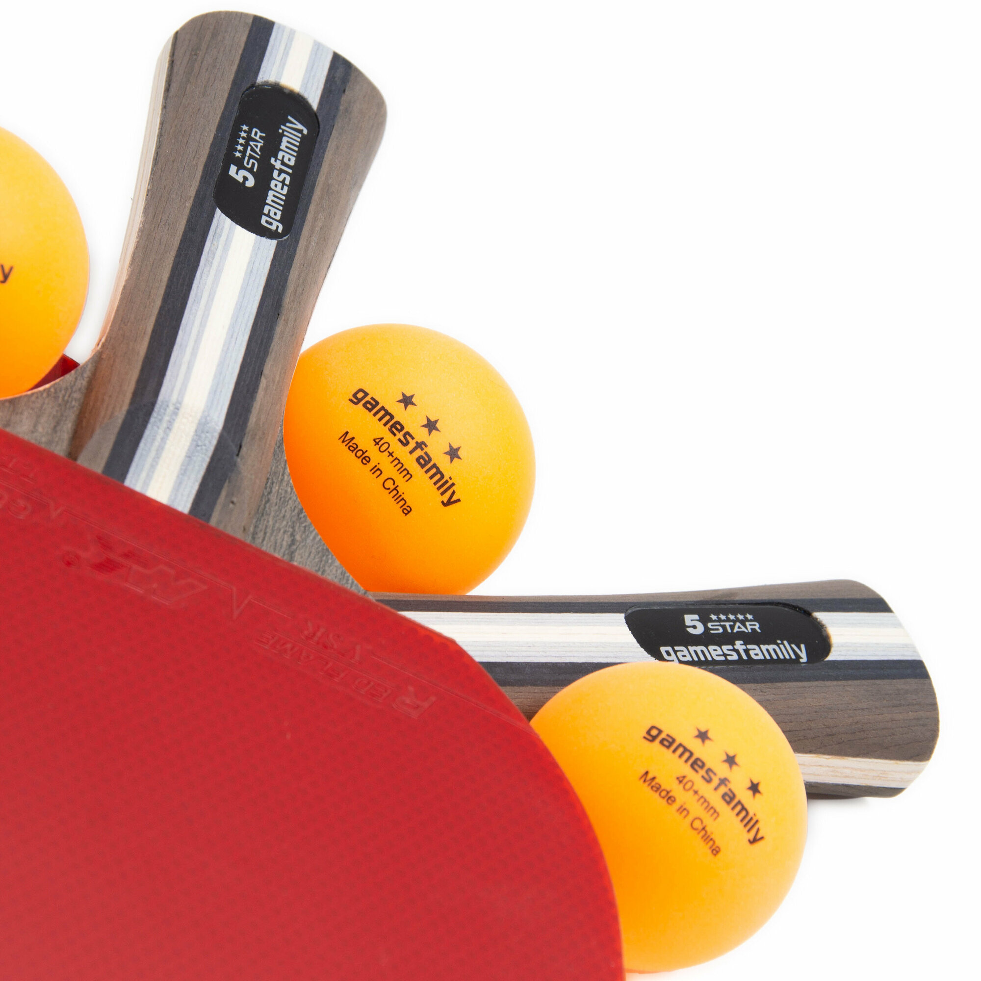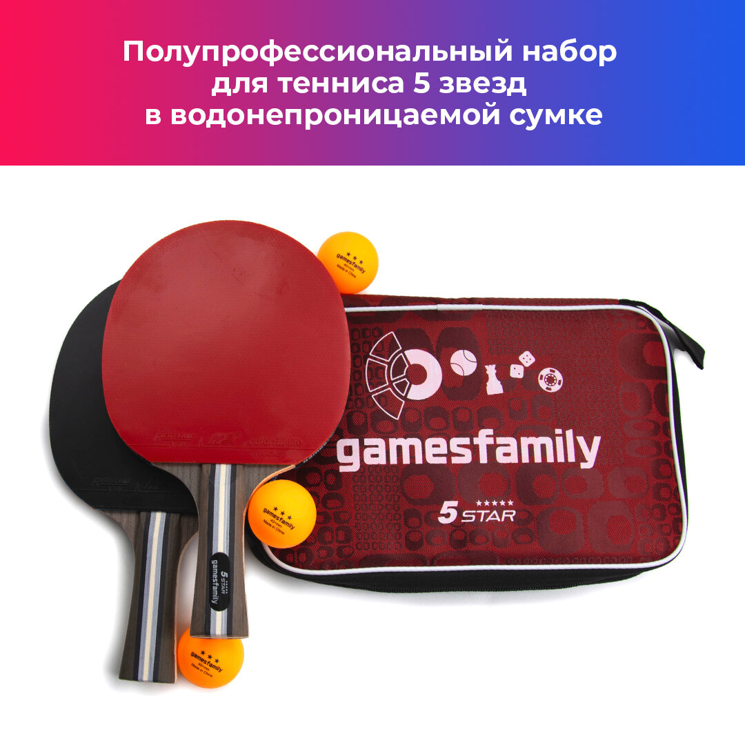 Gamesfamily Полупрофессиональный набор 5 звезд для настольного тенниса: 2 ракетки, 3 белых мячика 40+мм в красной водонепроницаемой сумке с ручкой