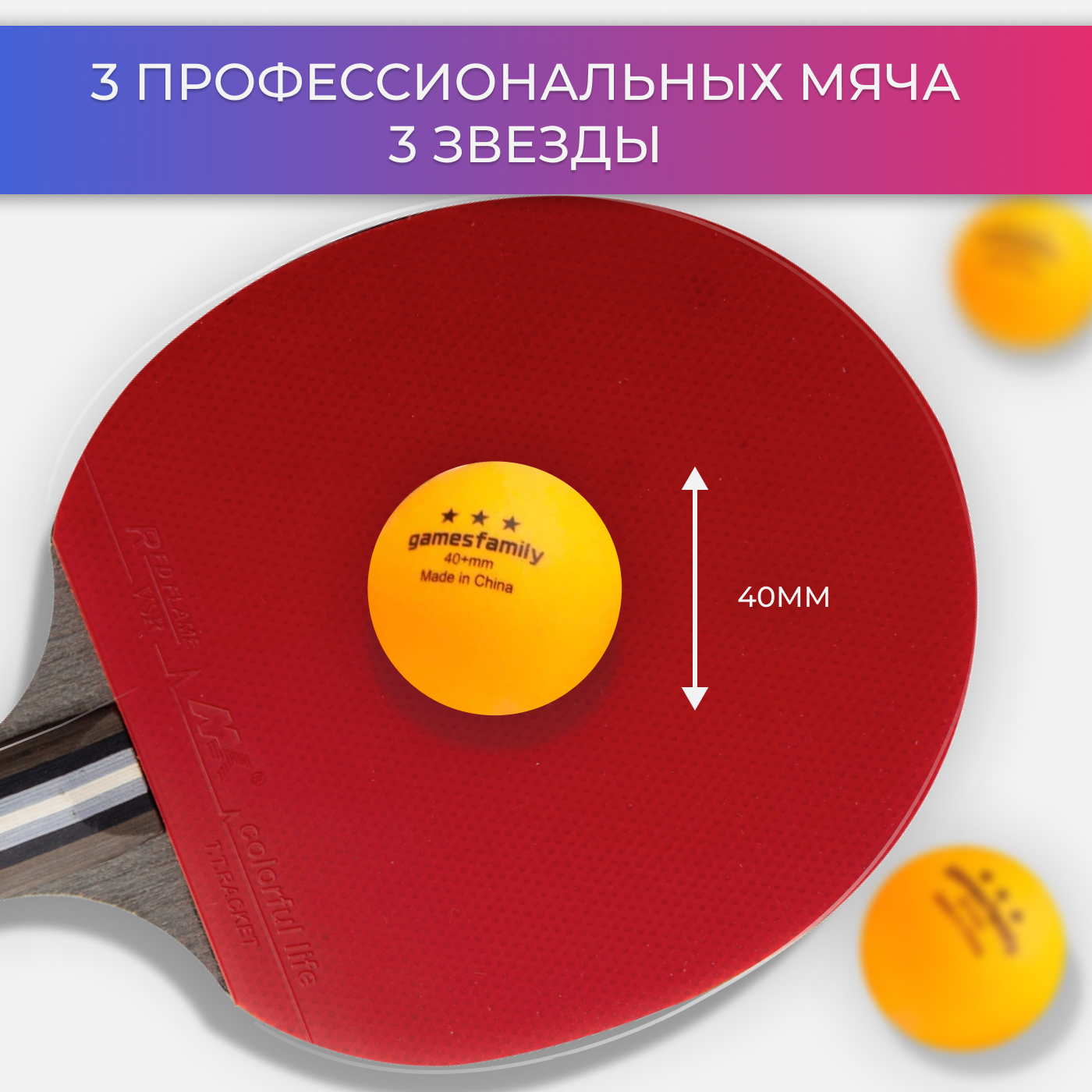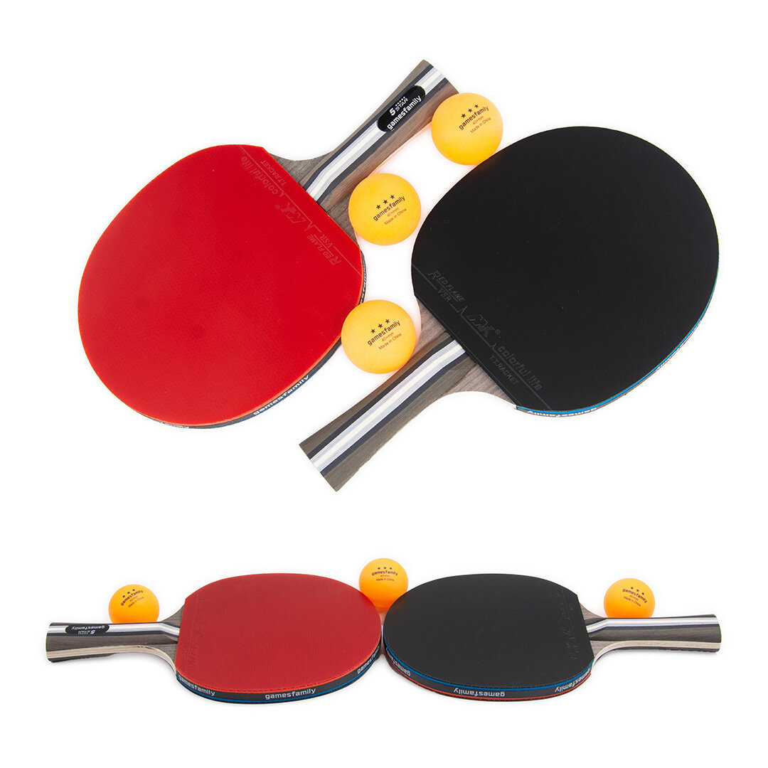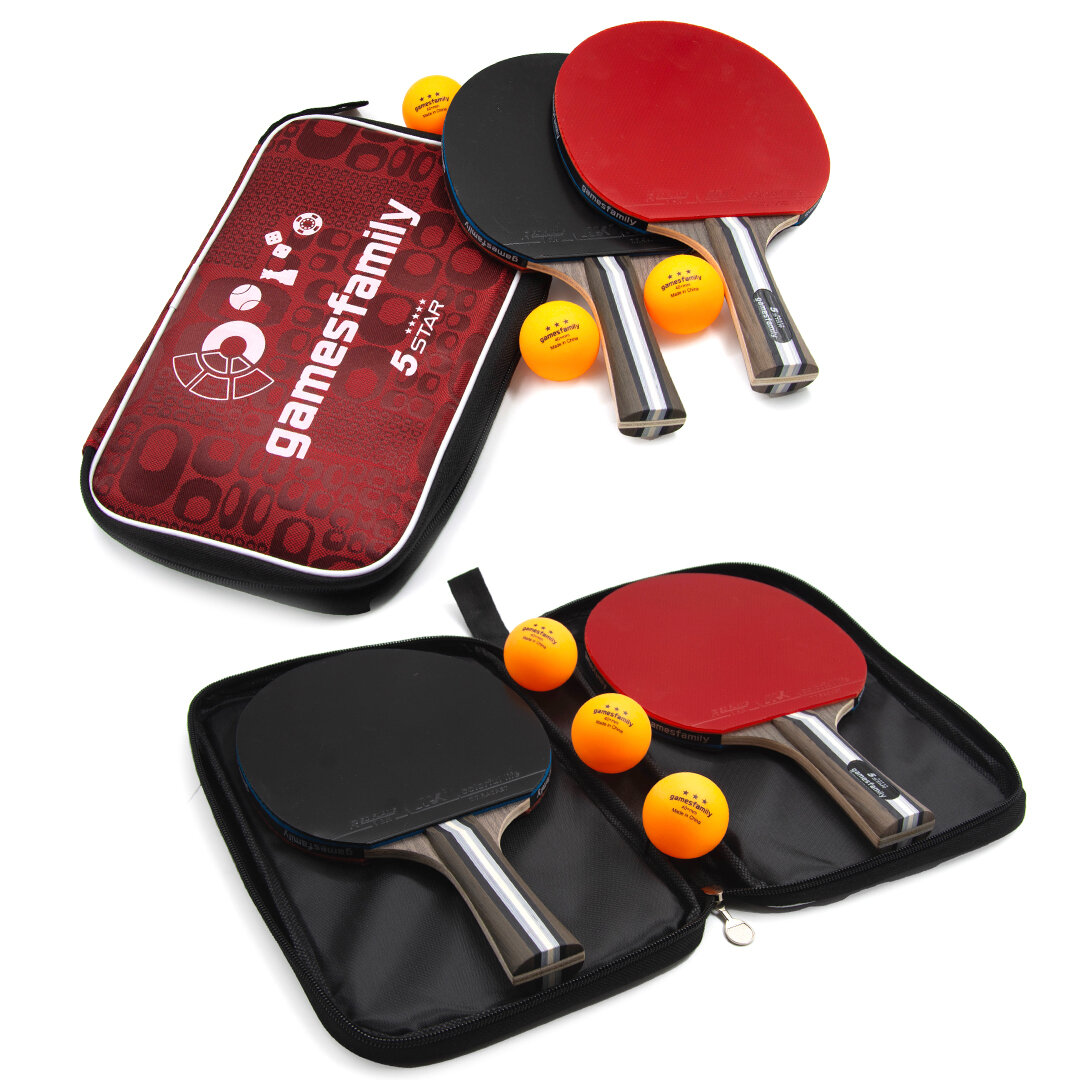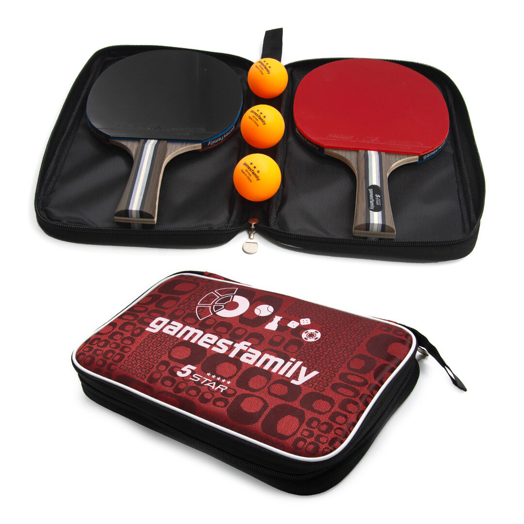 Ракетки для настольного тенниса Gamesfamily 2 полупрофессиональных ракетки, 3 белых мячика и чехол