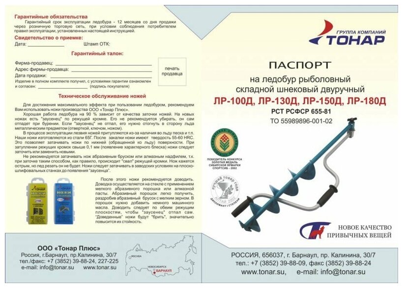 Ледобур для рыбалки зимней Тонар 130 левого вращения ЛР-130Д LK-130LD интересное: