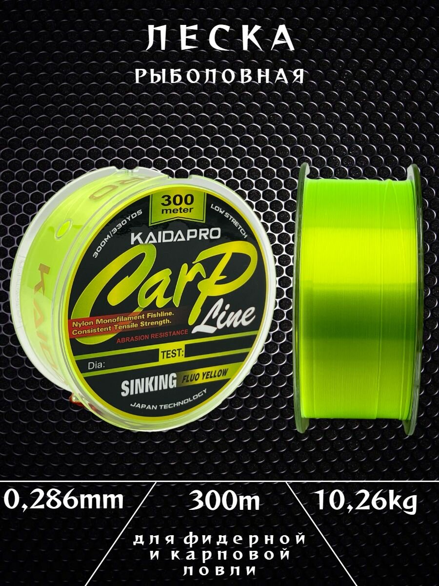 Монофильная тонущая леска для рыбалки кайда Карп Лайн/ Карповая Леска KAIDA Carp Line FLUO YELLOW 300 м 0,286 мм интересное: