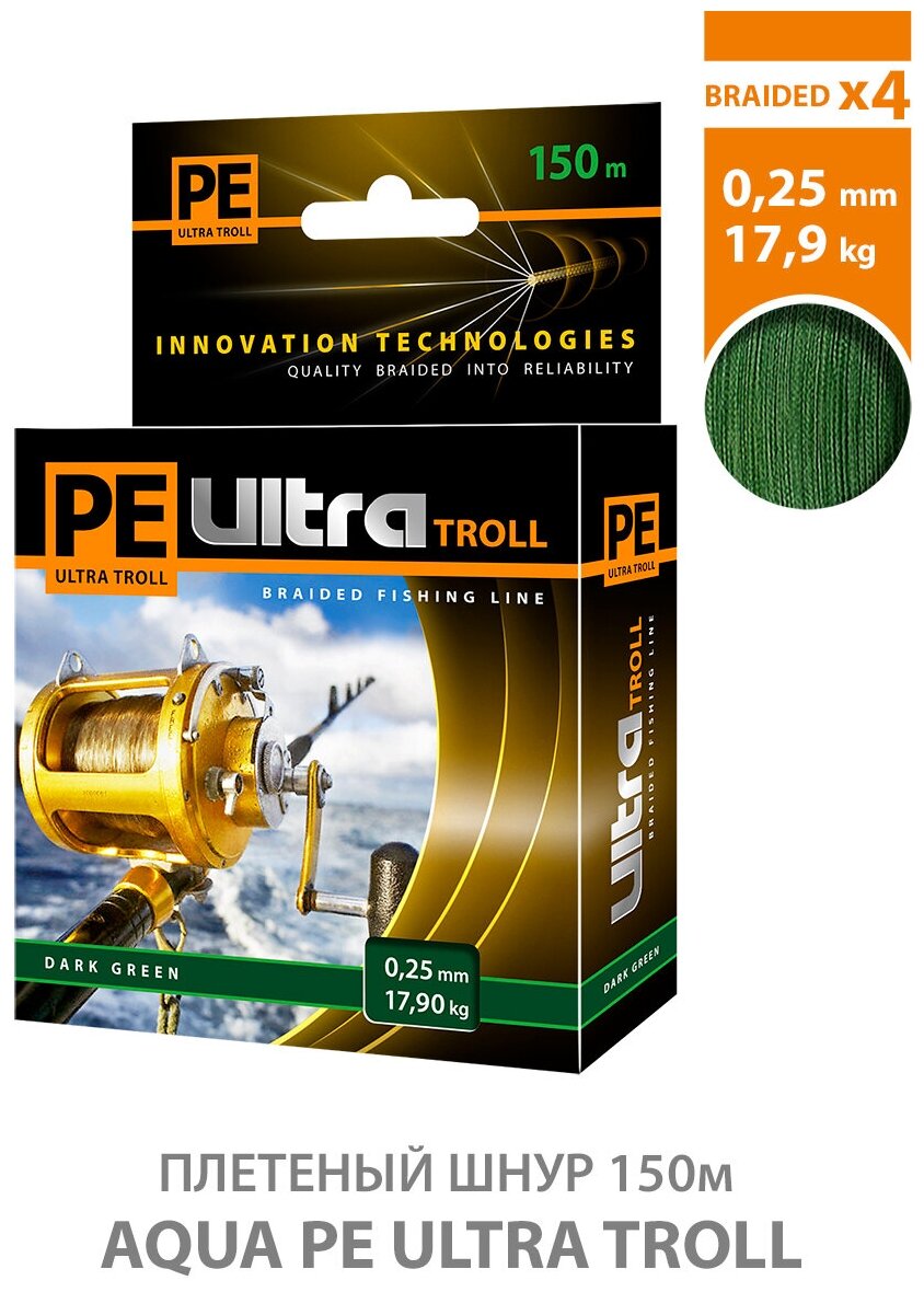 Ниже Вы можете прочитать отзывы на Плетеный шнур для рыбалки AQUA PE ULTRA TROLL Dark Green 0,25mm 150m, ознакомится с подробными характеристиками, посмотреть интересные обзоры и фотографии на Плетеный шнур для рыбалки AQUA PE ULTRA TROLL Dark Green 0,25mm 150m.