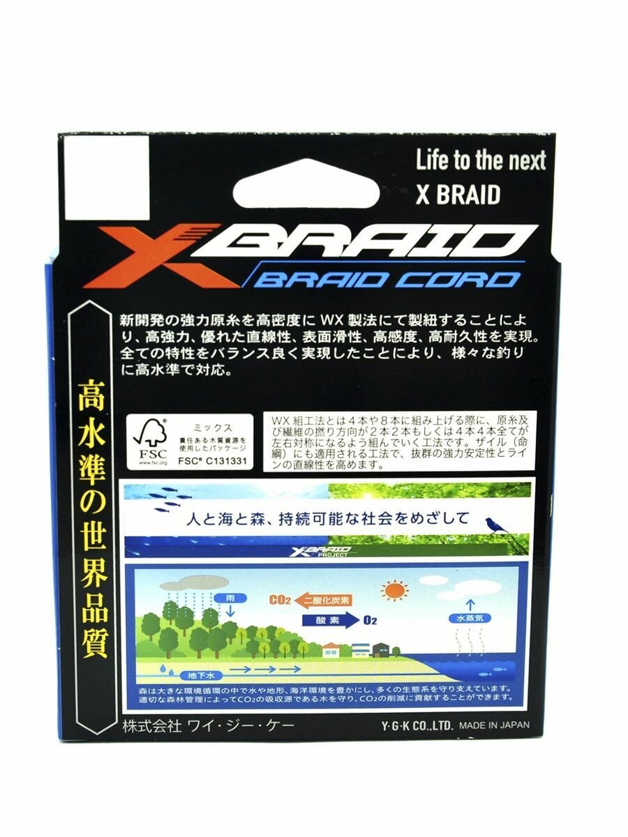 Плетеный шнур YGK X-BRAID BRAID CORD PE X4 150m #0.6 (12lb/5.5кг/0.128mm)
