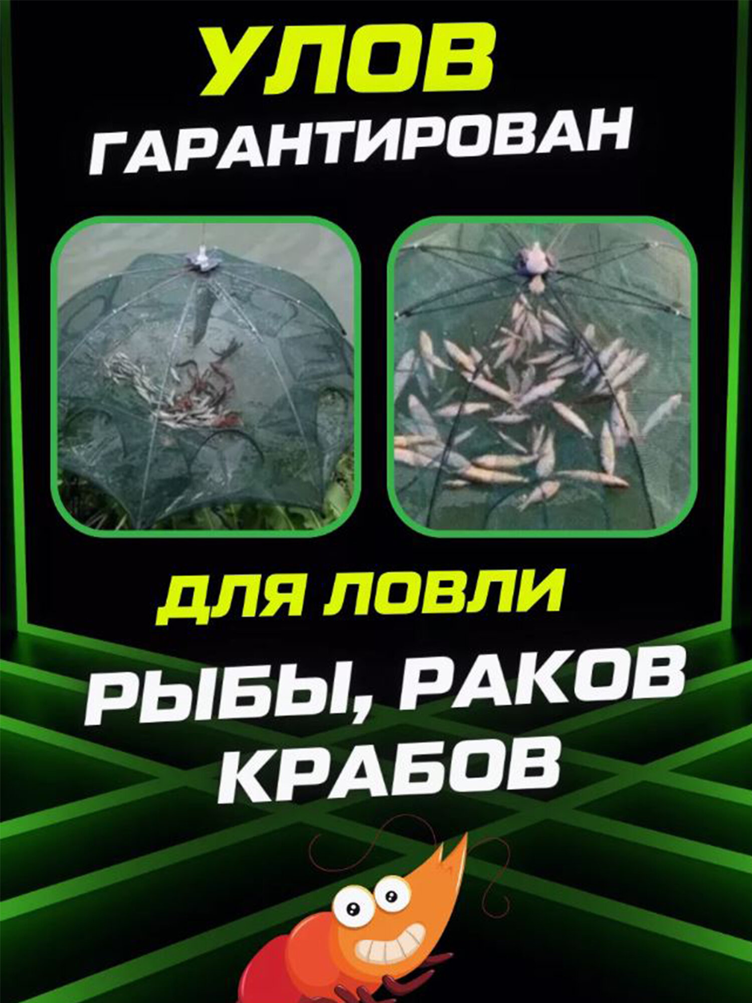 Раколовка зонт 6 входов для рыбалки на рыбу, раков, складная конструкция интересное: