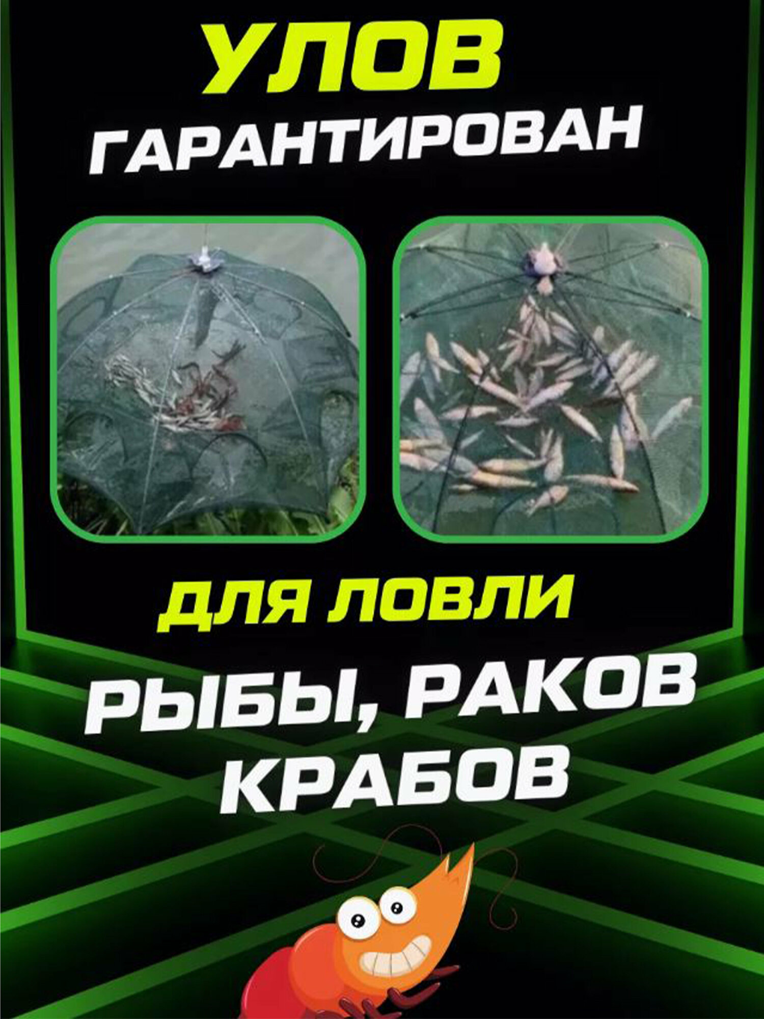 Раколовка зонт 8 входов для рыбалки на рыбу, раков, складная конструкция интересное: