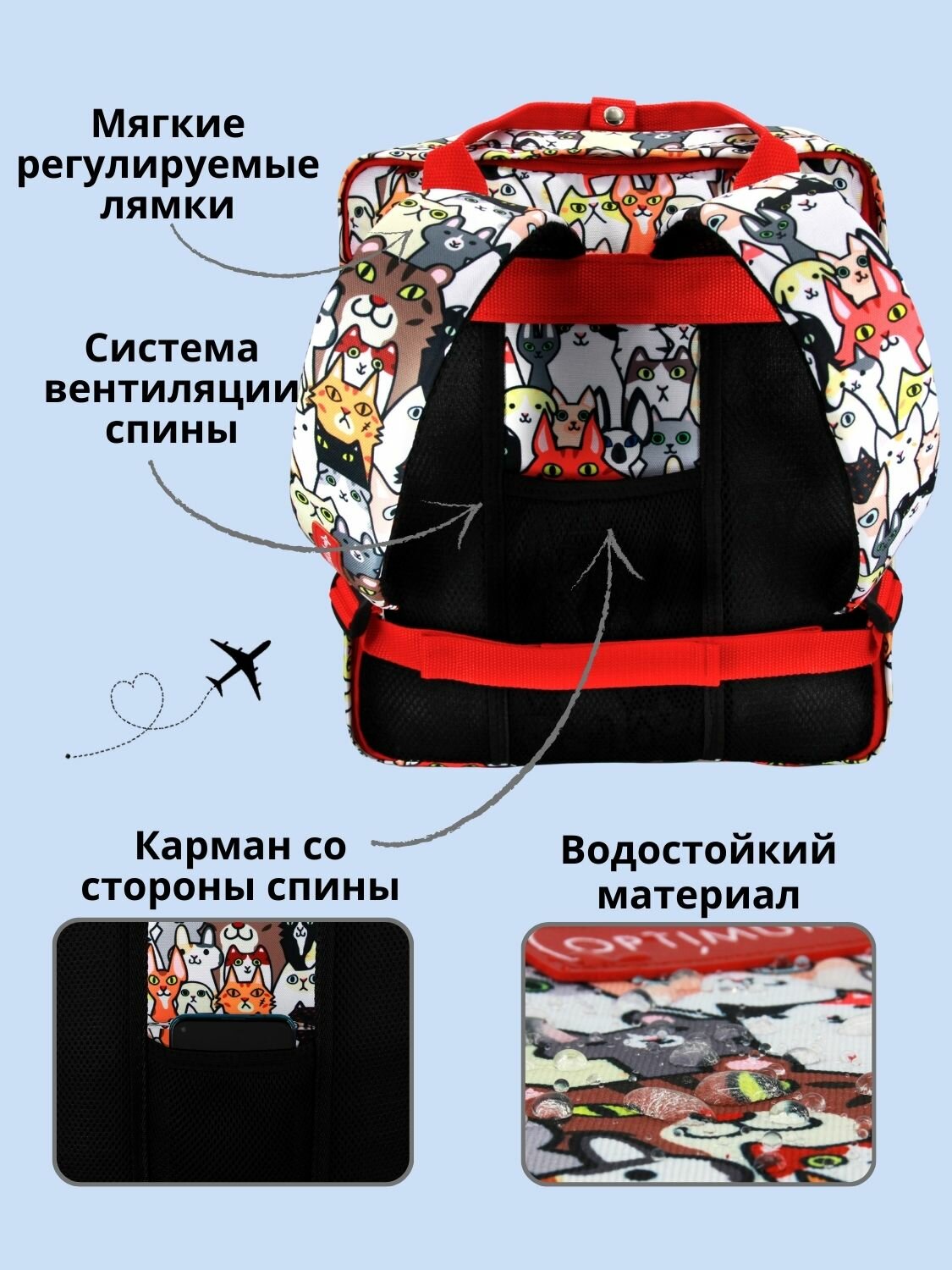Рюкзак сумка дорожная ручная кладь 36х30х27 для Победы, котики
