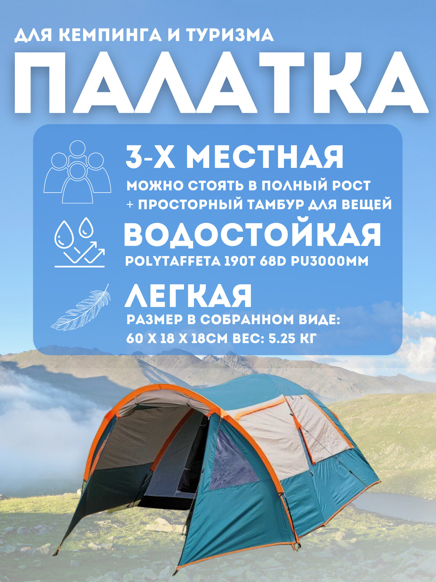 Палатка туристическая 3 местная JWS016 интересное: