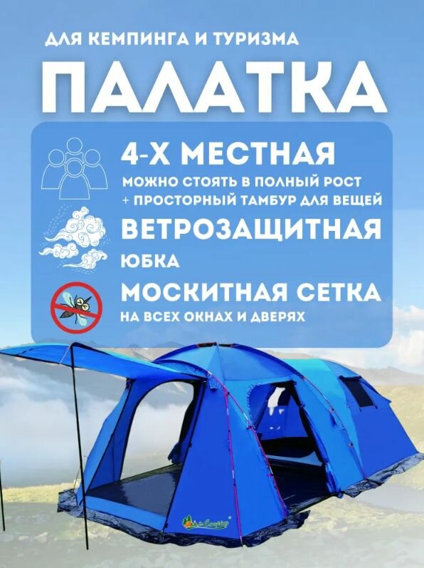 Двухслойная четырехместная туристическая палатка с тамбуром mir1600W-4 интересное: