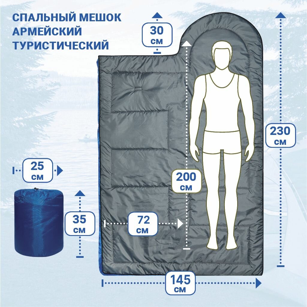 Спальный мешок Фрегат Комфорт (200) туристический, армейский, синий интересное:
