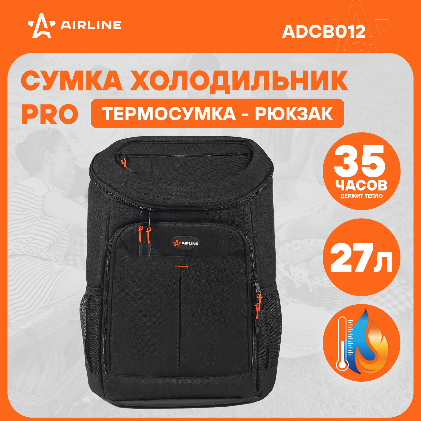 Купить Сумка-холодильник (термосумка) рюкзак 27 л, водонепр, черный ADCB012 AIRLINE