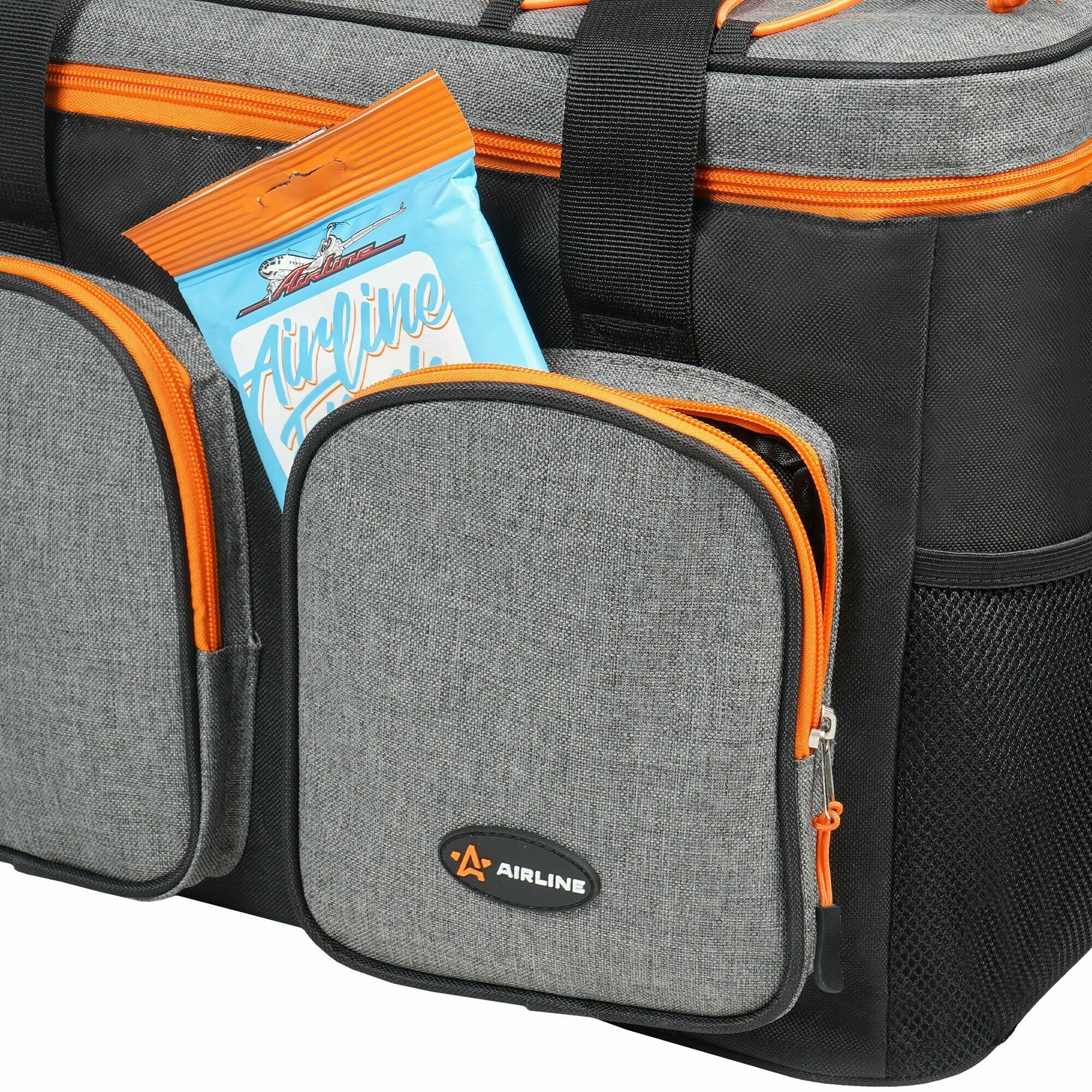 Сумка-холодильник (термосумка) на колесах с телескоп. ручкой 48 л, водонепр, черн./сер./оранж. ADCB014 AIRLINE