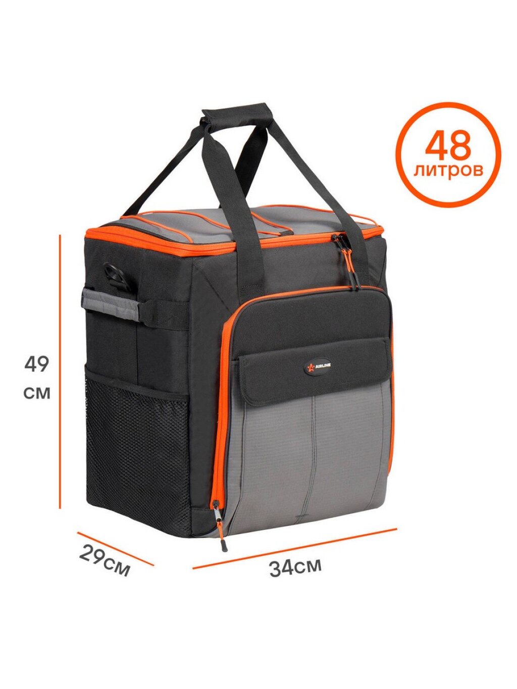 Сумка-холодильник (термосумка) на колесах с телескоп. ручкой 48 л, водонепр, черн./сер./оранж. ADCB014 AIRLINE