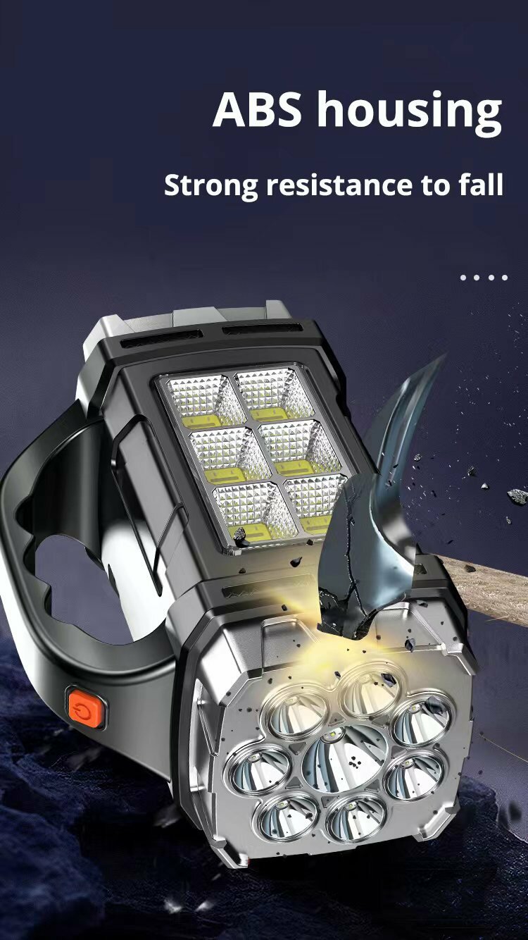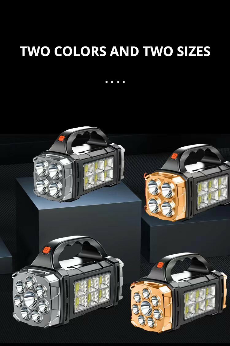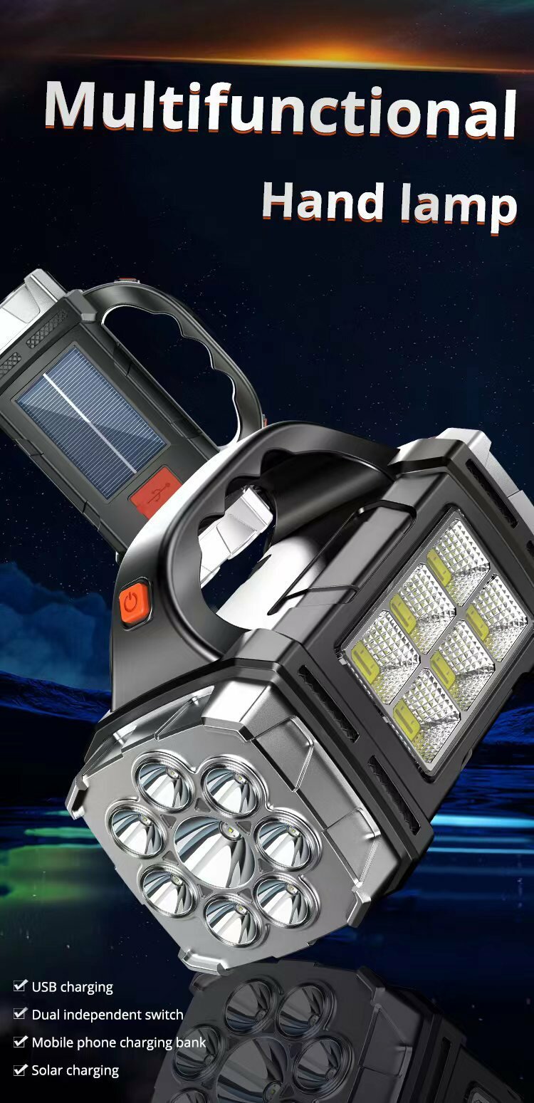 Фонарь светодиодный многофункциональный бликовый прожектор + мощный боковой свет на солнечных батареях + USB зарядка