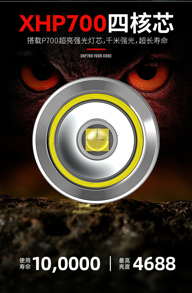 Фонарик ручной с цифровым дисплеем водонепроницаемый/телескопический зум/перезаряжаемый/бликовый фонарик